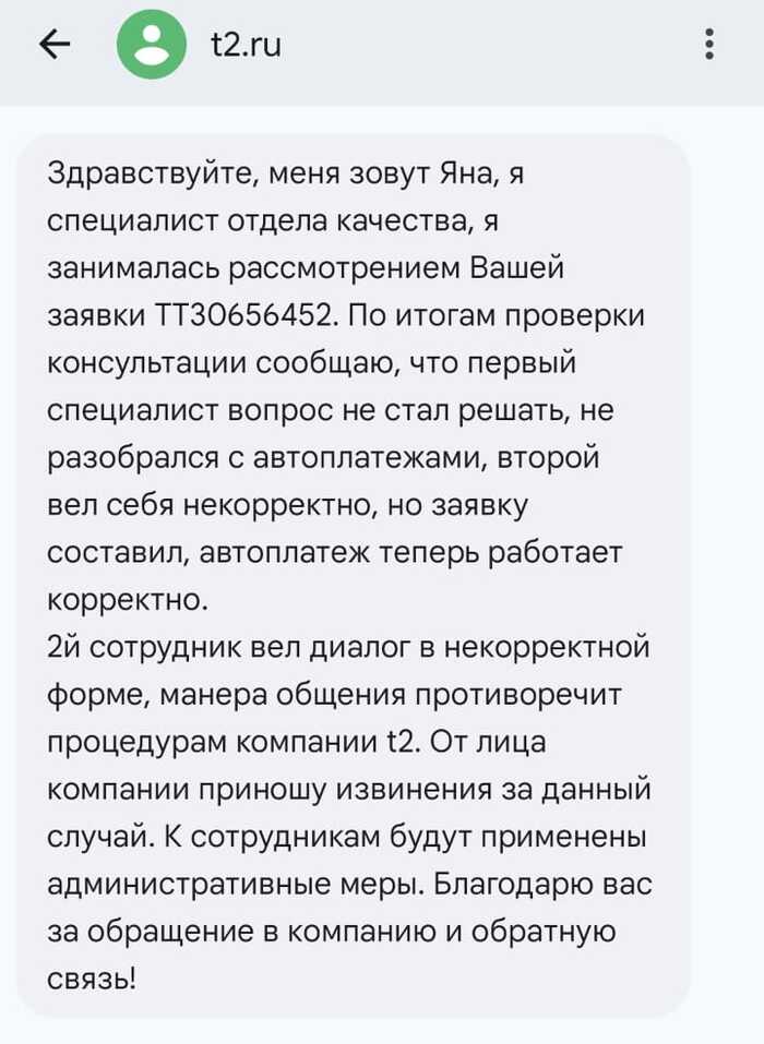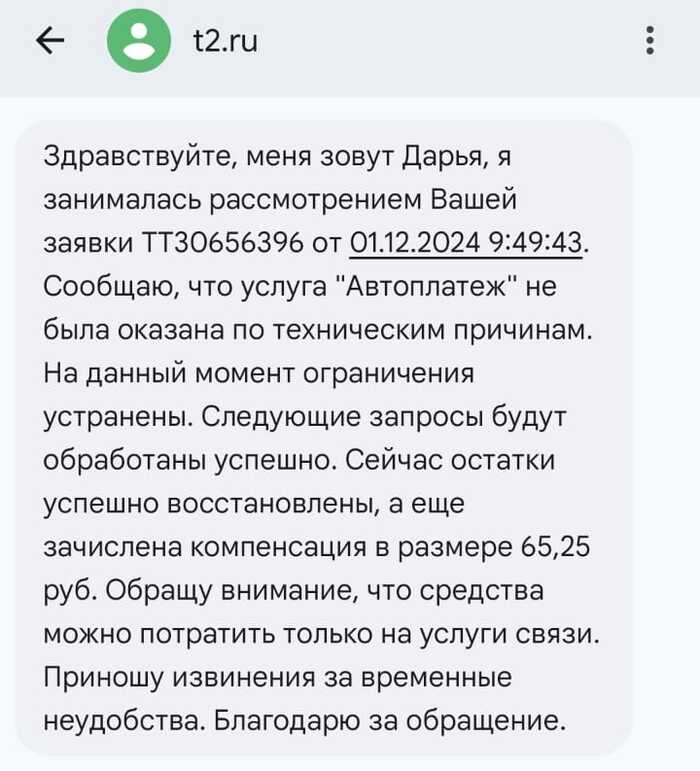 Утро следующего дня - 2 декабря, спокойно еду на работу. Звонок от Т2: