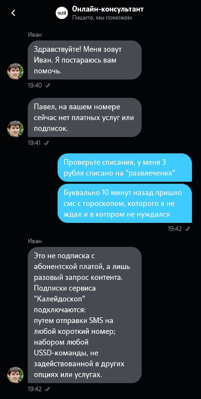 Здрасте, ребятушки. "Полезные услуги". Пошел в поддержку. Говорят, я сам смс отправил и получил оплаченную услугу