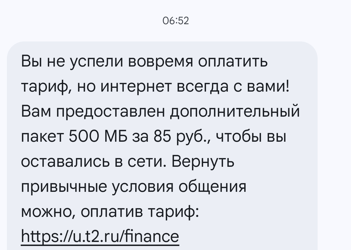 Забыл оплатить тариф на телефоне,встаю с утра на работу и вижу смс.