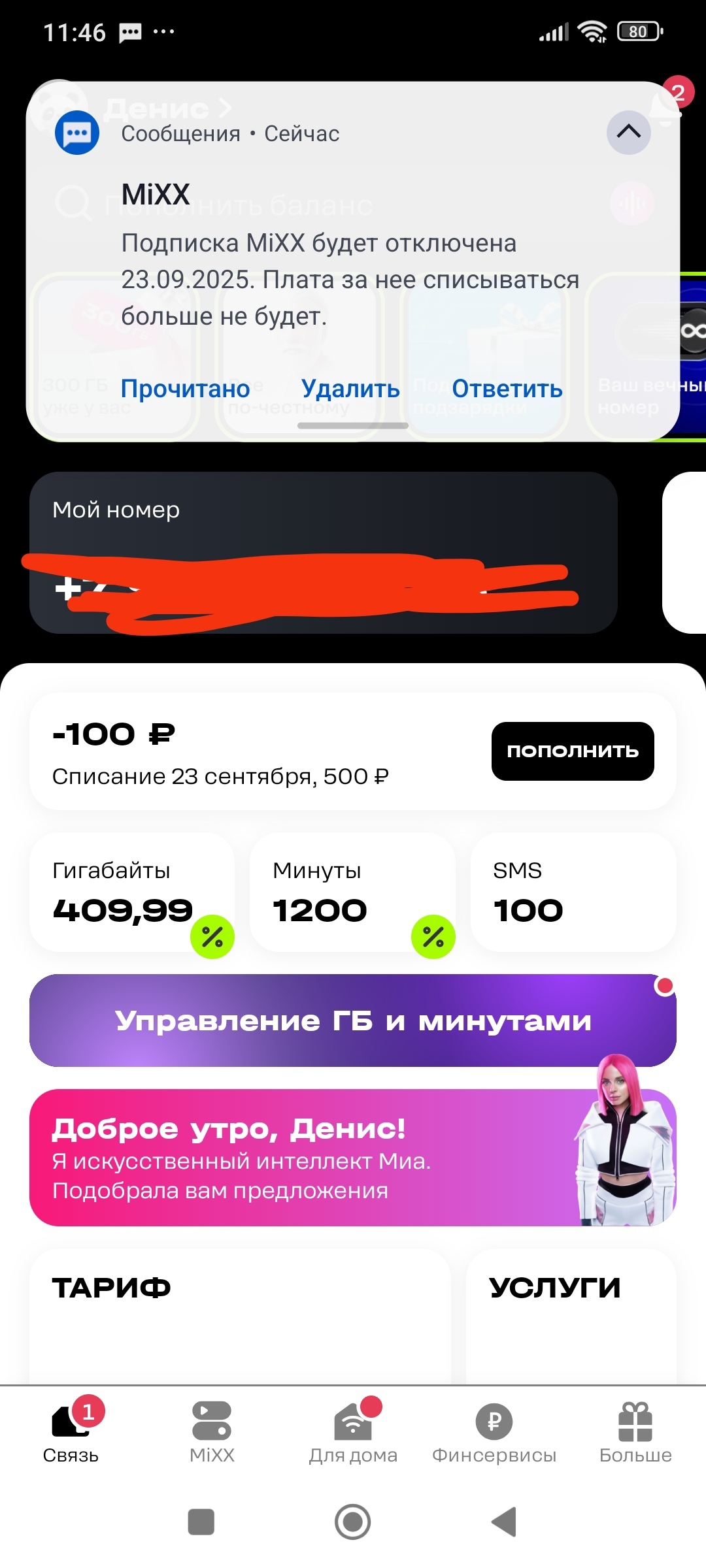 После потрясающего предложения мегафона о повышении тарифа с 800 до 1200 рублей, от которого нельзя отказаться, решил перенести номер на теле 2. Выбрал тариф блэк за 500 руб/мес и оформил заявку на перенос. Каково же было мое удивление когда после переноса мне был объявлен тариф 800 руб/мес. Оказывается эти ушлые господа подключили нахер не нужную мне подписку Mixx, без моего ведома и списали с меня за первый месяц 800 руб вместо 500. Я конечно ее отключил сейчас и теперь ежемесячная плата стала 500 руб. Но на 300 рублей меня всетаки наебали. Вобщем ебала жаба гадюку.
