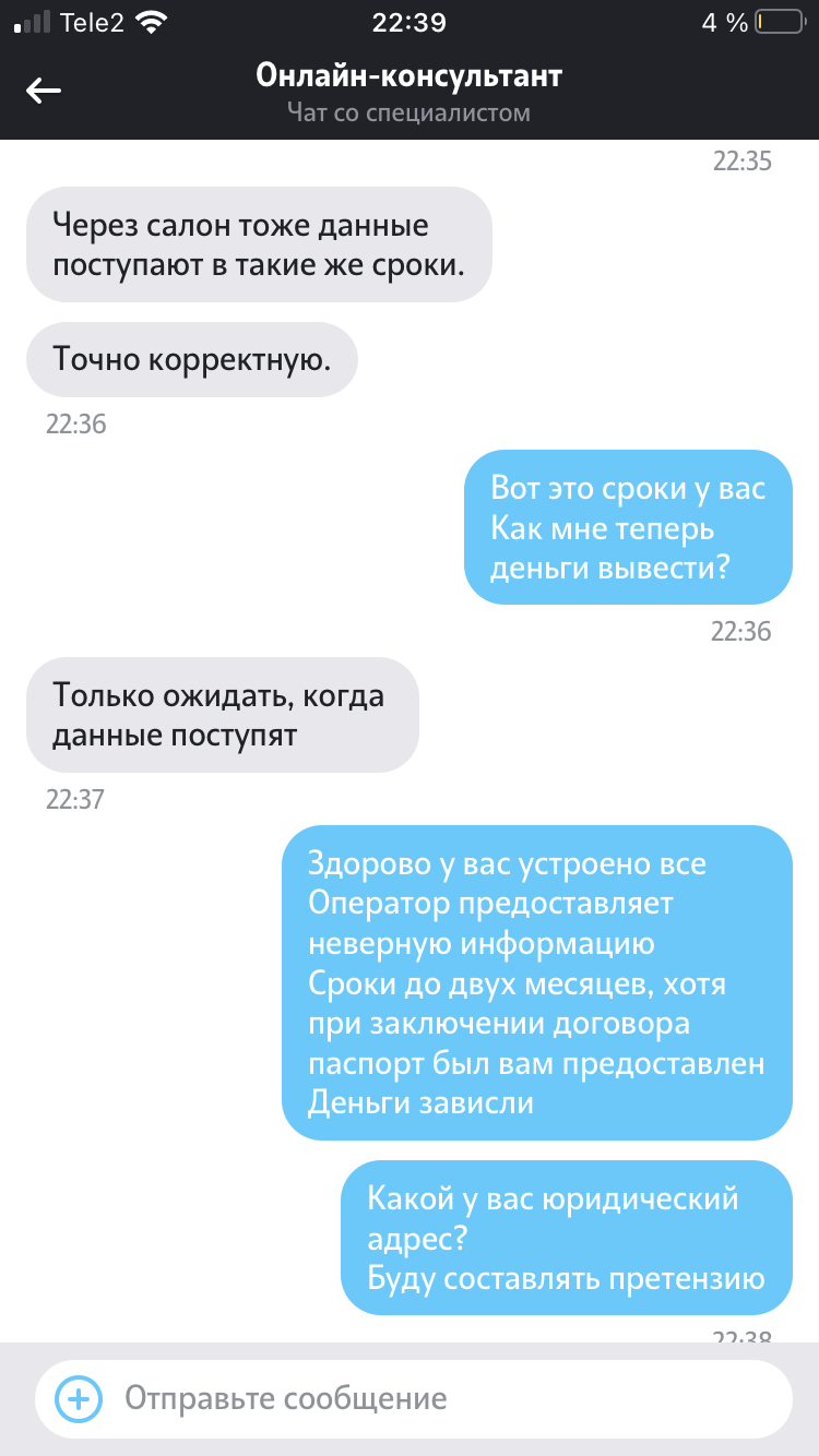 Теле 2 у меня к вам вопрос, вы там чему учите операторов и через сколько в итоге подтвердите мои данные?