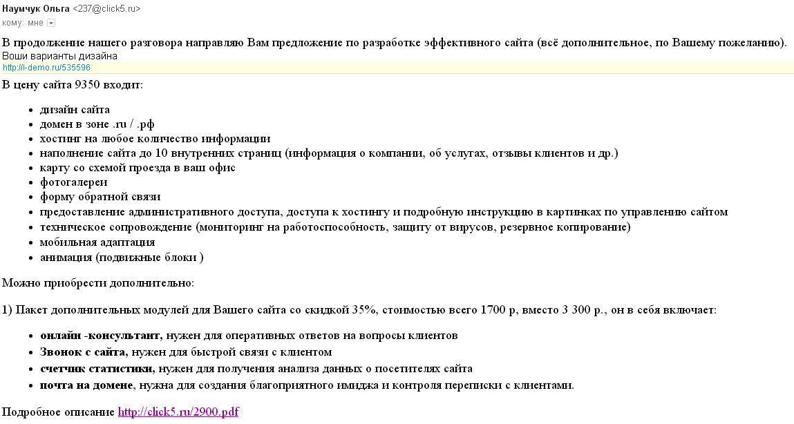 Итак, я имею свой маленький бизнес, у меня нет рекламы и своего сайта. Основной поток заказчиков - сарафанное радио. Не могу точно сказать, как они (telecom media) нашли меня и мои контакты, но предполагаю, что я продавал что-то из оборудования на всем известном сайте, дабы обновить и увеличить мощности. Было пару холодных звонков с предложением их услуг, но я не предавал этому значения, так как нужды в сайте не было. Начал задумываться о сайте, когда клиенты стали часто о нем спрашивать и отвалилось пару хороших заказов. Решено - нужен сайт! И о чудо, очередной звонок от Телеком медиа. Мы пообщались с девушкой, она отправила на почту три ценовые категории типа эконом, стандарт и премиум, с кучей вариантов у каждой категории. Каждый вариант был уже с интеграцией моей тематики от текста до картинок. Все сайты были современные, но в каждом я видел тупо шаблон, объясню, они были все настолько шаблонны, что каждый был похож на сайты однодневки или сайт одного товара. Наверняка видели, например, продажа копии знаменитых часов или кредитная карта нож, ну в общем суть ясна)) Да, при этом и ценник на сайт под ключ в этих трех группах был не большой - эконом 5800р, стандарт 9800р, премиум 15100р. Кстати отличия в этих трех группах, только в добавлении анимации в более дорогих шаблонах (появляющиеся, выезжающие блоки с разных углов). Это предистория))