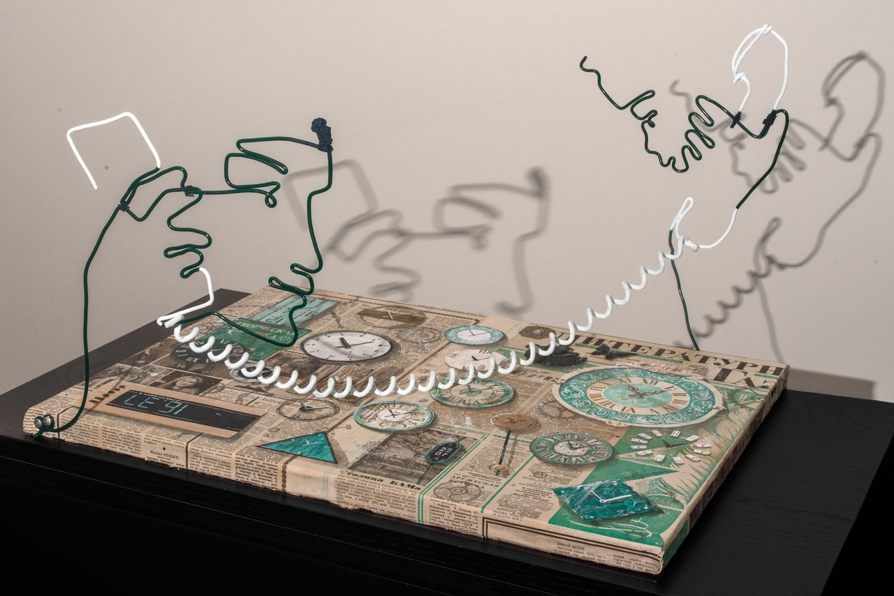 «Представь, что в далеком детстве ты нашёл старый дисковый телефон. Пылинки, которые ты смахнул с него, легко и весело заблестели в воздухе. Волшебно. Наверное, с него получится куда-то позвонить? Неумело, не с первого раза, пробуя раз за разом описать пальцем полукруг на непослушном диске, у тебя получается набрать нужные цифры. Холодная трубка касается уха. Гудки. “Аллё!”. Из динамика слышится голос, который чем-то напоминает голоса твоих родителей или тебя самого. Смущенно отвечаешь на глупые вопросы: “Дела хорошо, угу, сегодня в магазин ходили...”. Неловкое молчание. Думаешь. Формулируешь. Слегка боязно. Голос на том конце провода будто только и ждёт твоего вопроса. Решаешься. “Ты всё ещё любишь рисовать?” Слышишь ответ и радуешься ему, немного успокаиваешься, и вот уже вопросы летят один за другим: “А как мама? А Снежа? А бабушка? А что дядя? А ты? Уже работаешь? А дети есть? А что, там уже есть летающие машины?..”. В ответ слышишь честные ответы, такие грустные и радостные, непонятные и само собой разумеющиеся. Замешательство. Ты грустно прощаешься с таким родным и радостным голосом. Гудки. Кладёшь трубку. Нельзя допустить, чтобы кто-то еще позвонил по нему...»