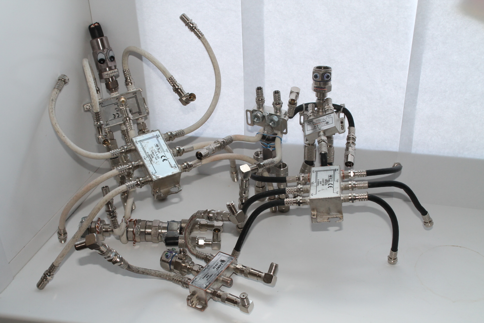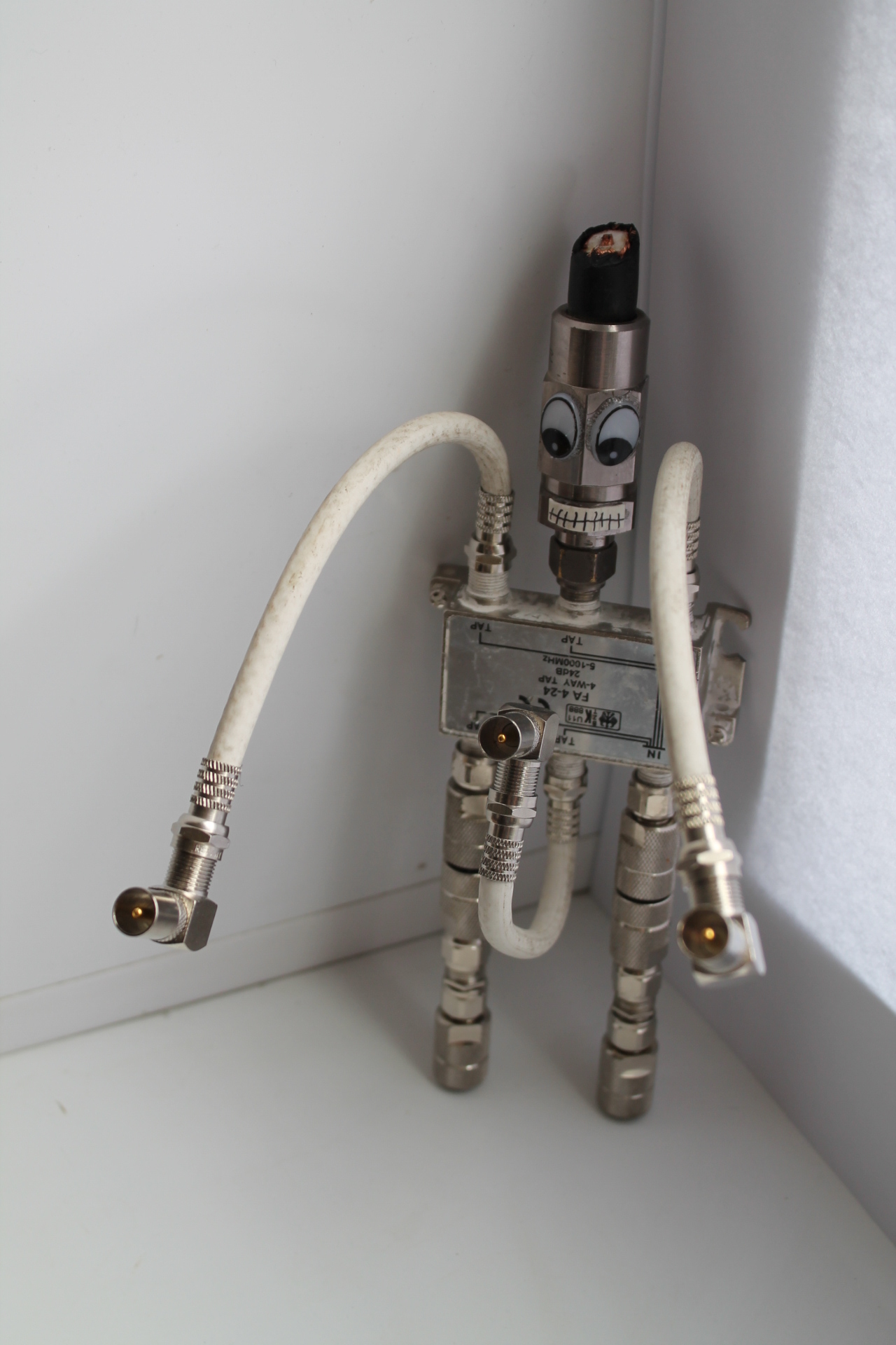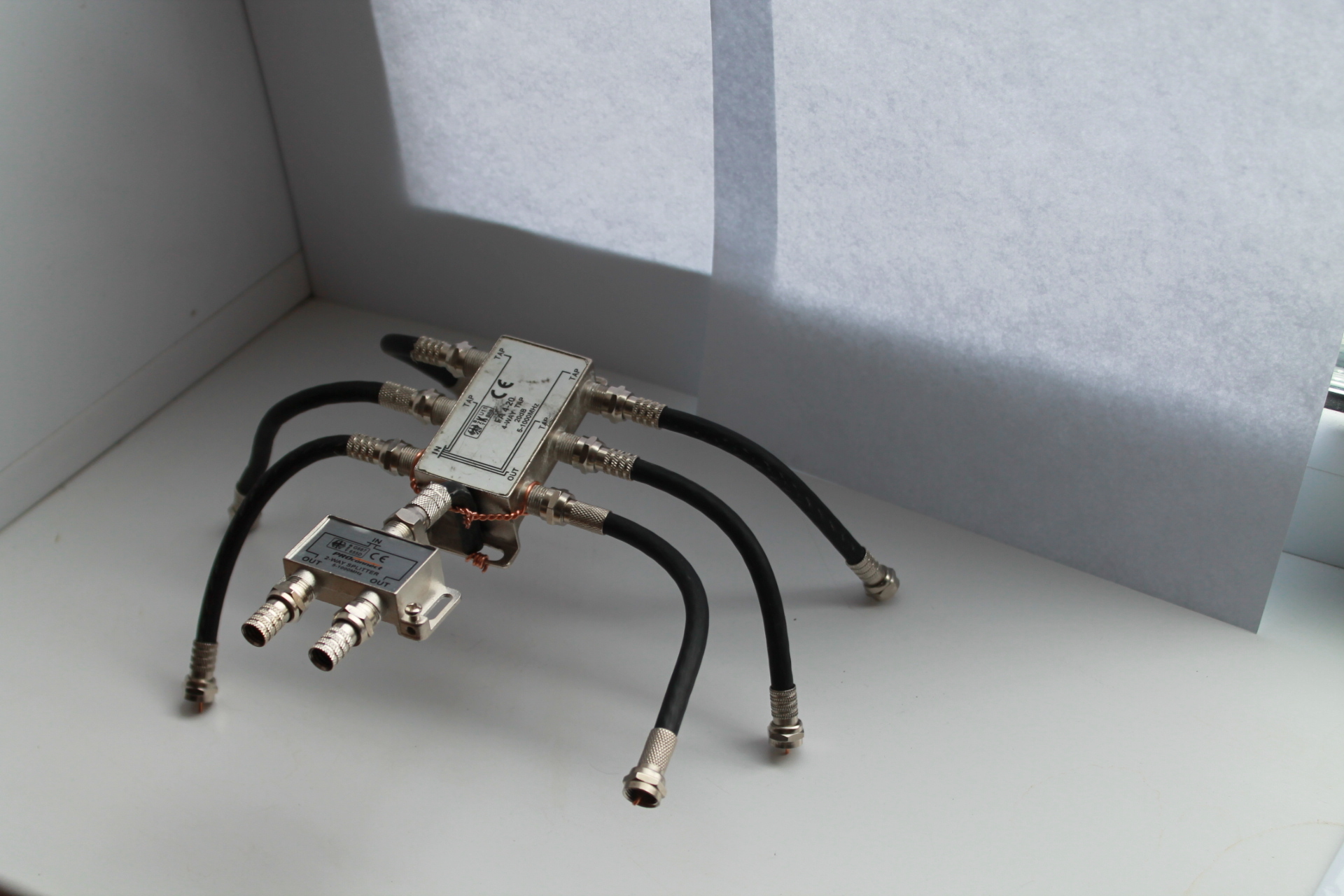 Выходной день (и такие иногда бывают))). Решила моя дражайшая супруга на балконе прибраться и нагребла, как она выражается, два мешка «моего барахла». Вытаскивает эти два полиэтиленовых пакета и дает мне со словами: На разберись со своим хозяйством, что надо, что не надо, без тебя выкидывать не стала… Высыпал я на пол всё это богатство и умилился-обрадовался. Телевидение коаксиальное сейчас не в почете, каменный век, типа устаревшие технологии. Но выкидывать все равно жалко, даже если сейчас не нужно потом понадобиться, но и кучей в мешках держать тоже не правильно… И стал я все эти сокровища меж собой соединять, так хранить и искать проще, мелочевку не перебираешь, сразу крупное достаешь. Прикручиваю, значит, перемычки коаксиальные к подъездному сплитеру, и вдруг слышу, сын со сзади подходит и говорит: Ух ты, папа, это же паук… Посмотрел я внимательнее, а ведь реально похоже…