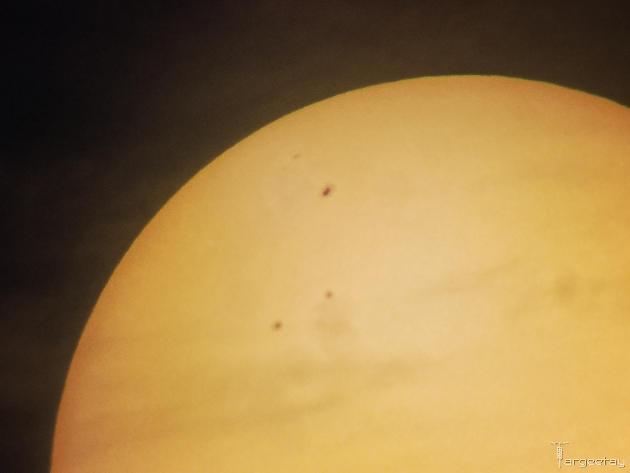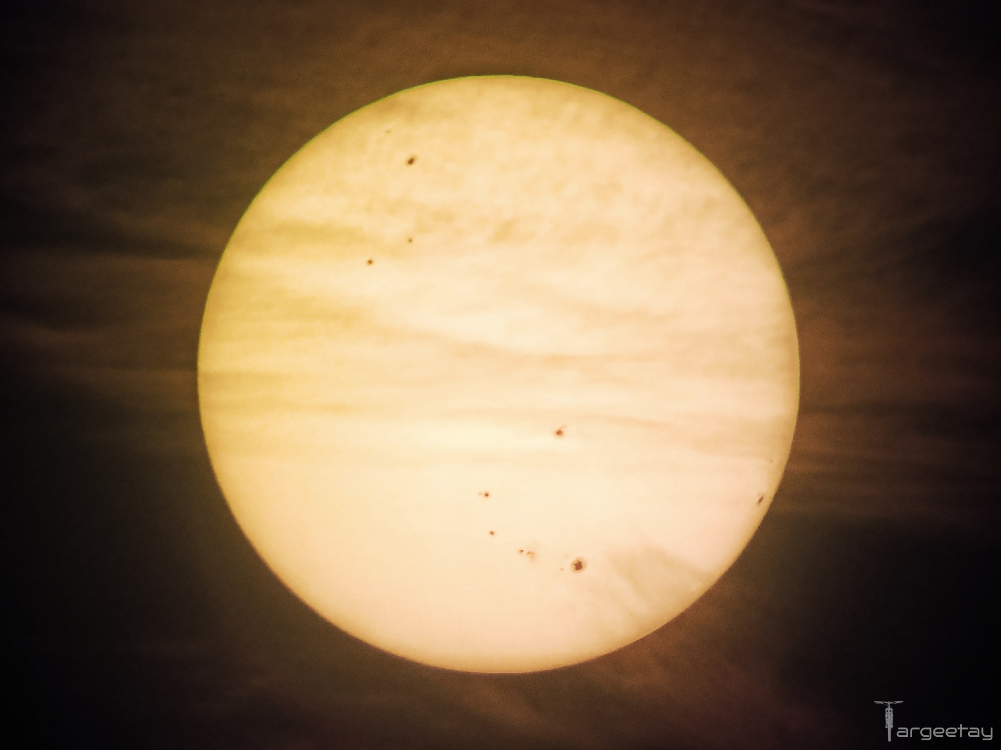 Солнце — (сквозь легкую облачность) окуляр 20 мм, Барлоу 2х, аппертурный фильтр, желтый фильтр для окуляра.