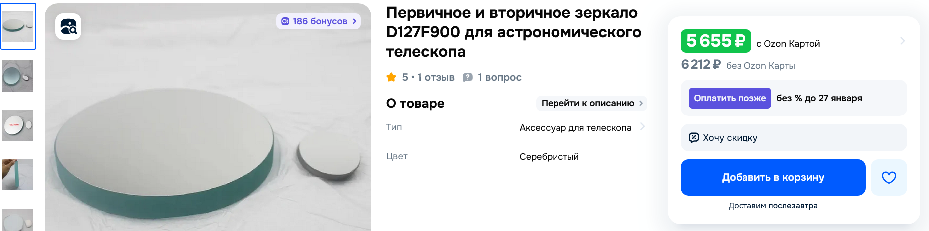 Зеркала (D=150/F=750). Я брал на Яндекс Маркете,