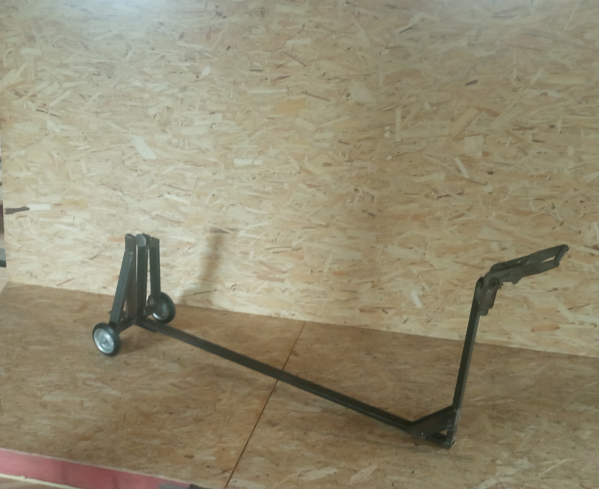 Вот эта круглая штука сверху, фиксатор груза. Так как чукча не сварщик, то насрал от души. Но вроде всё надёжно получилось. А главное удобно. Приподнял лист, подкатил девайс, и катай его родимого без напряга хоть 10 км хоть 20. Крайне удобная и полезная вещь получилась.