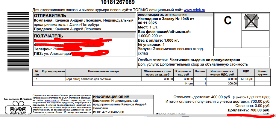 Ну 350 за лампочку - это норм! Однако я на радостях не сообразил, что 350 - это цена товара плюс доставка СДЭКом, а это, сука, чисто доставка. И кроме как СДЭКом они никакой компанией больше не отправляют, ссаные твари!