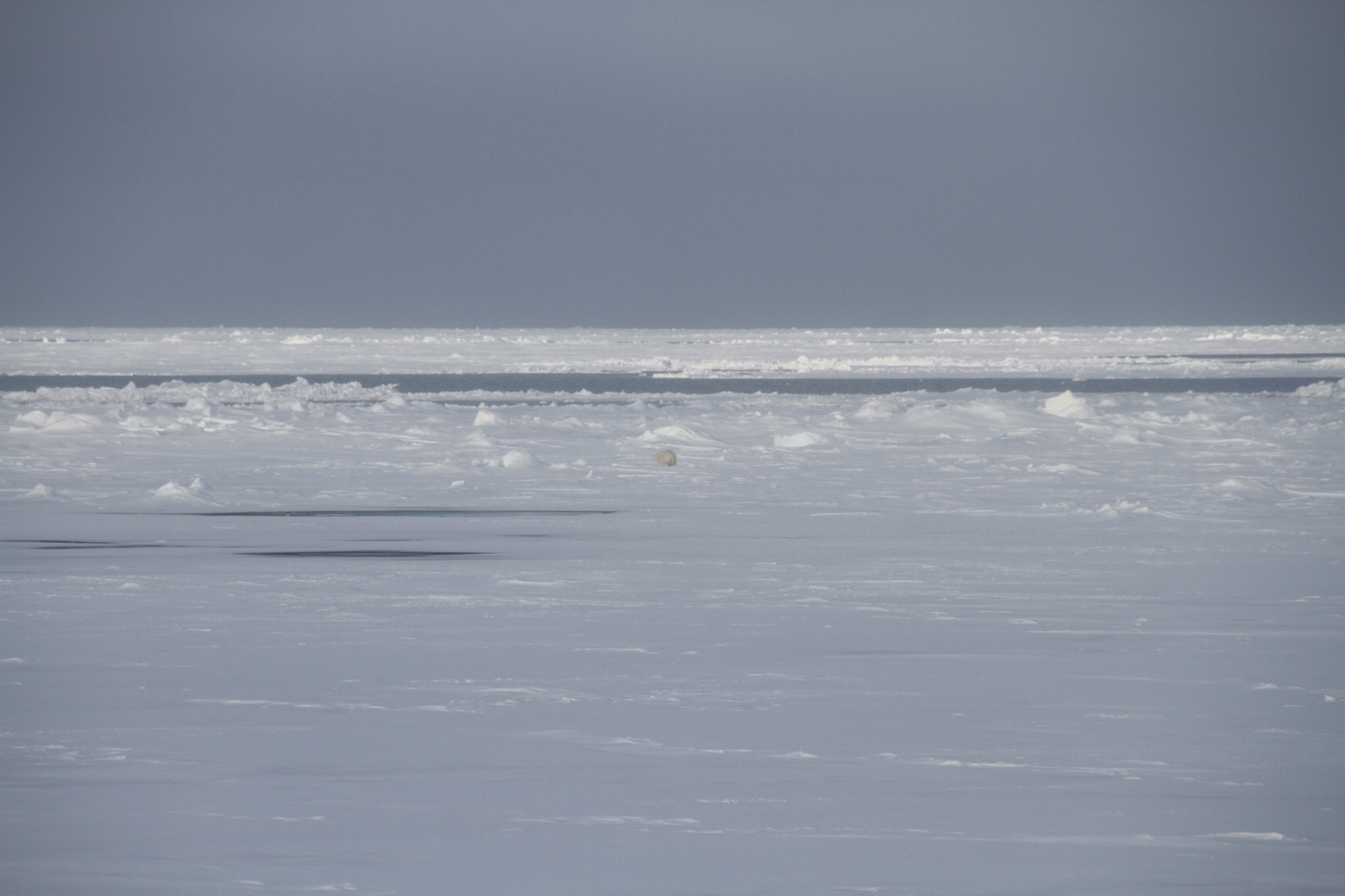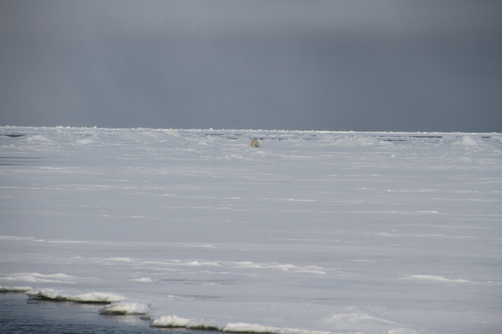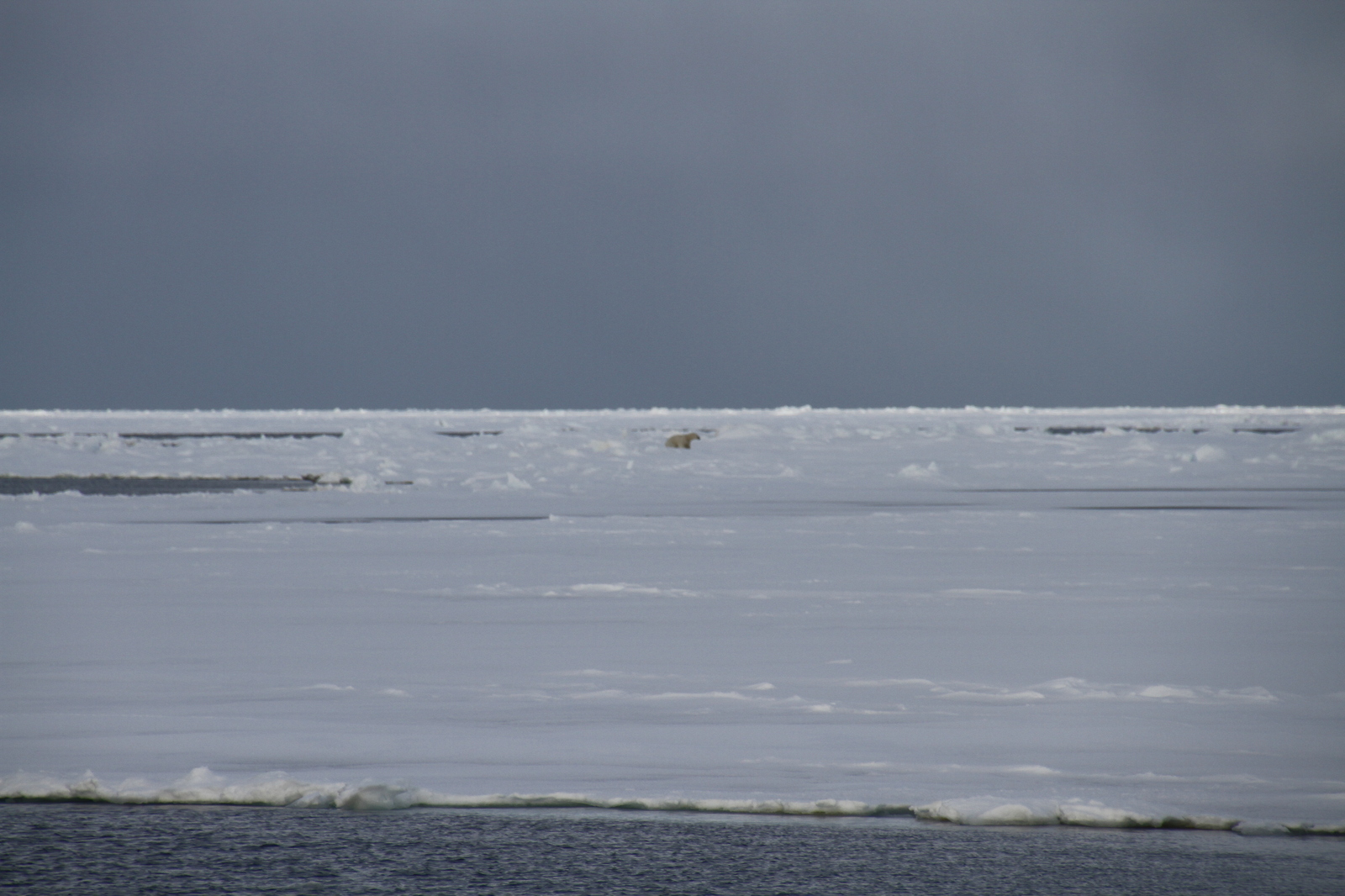 Несколько фото для тех, кто страдает от жары. Арктика, белое поле, полыньи и одинокий медведь.