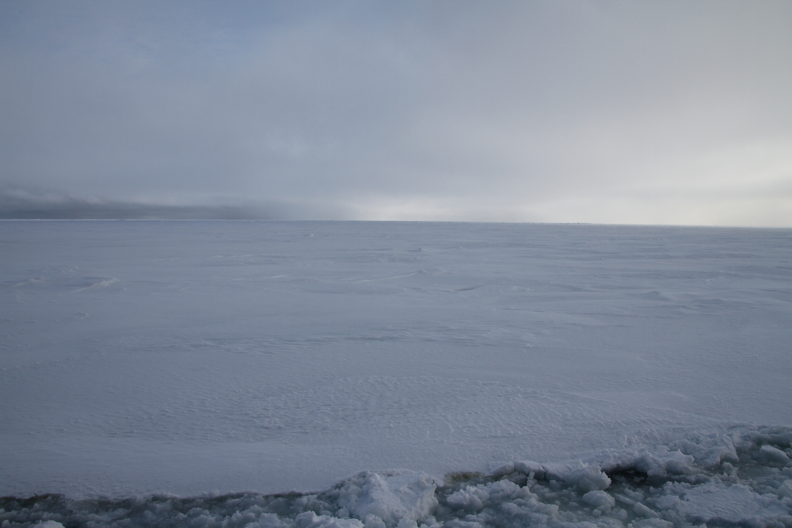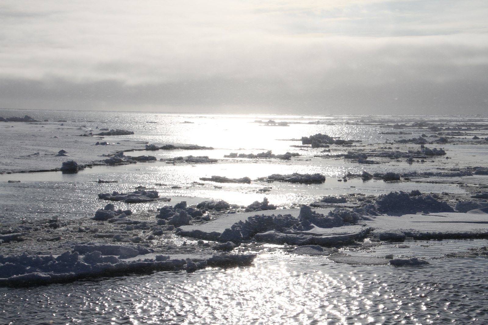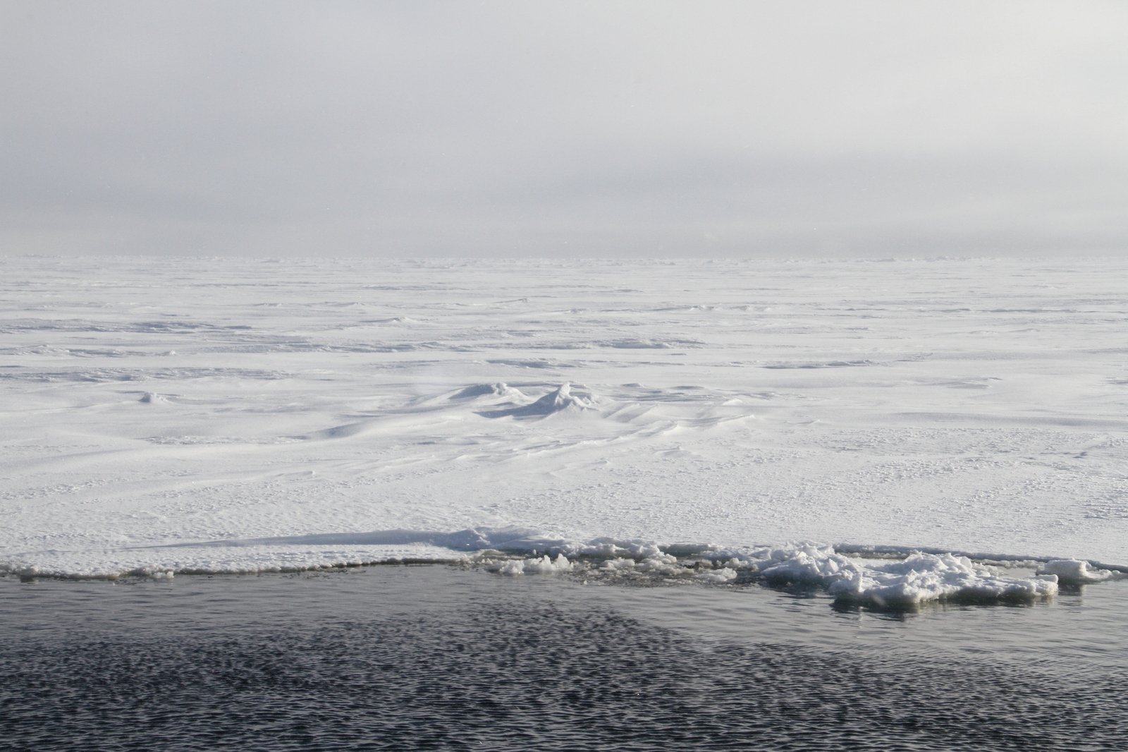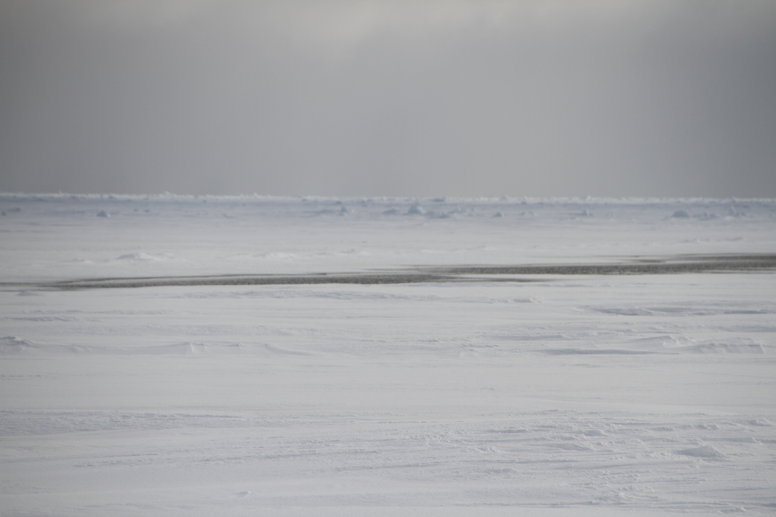 Несколько фото для тех, кто страдает от жары. Арктика, белое поле, полыньи и одинокий медведь.