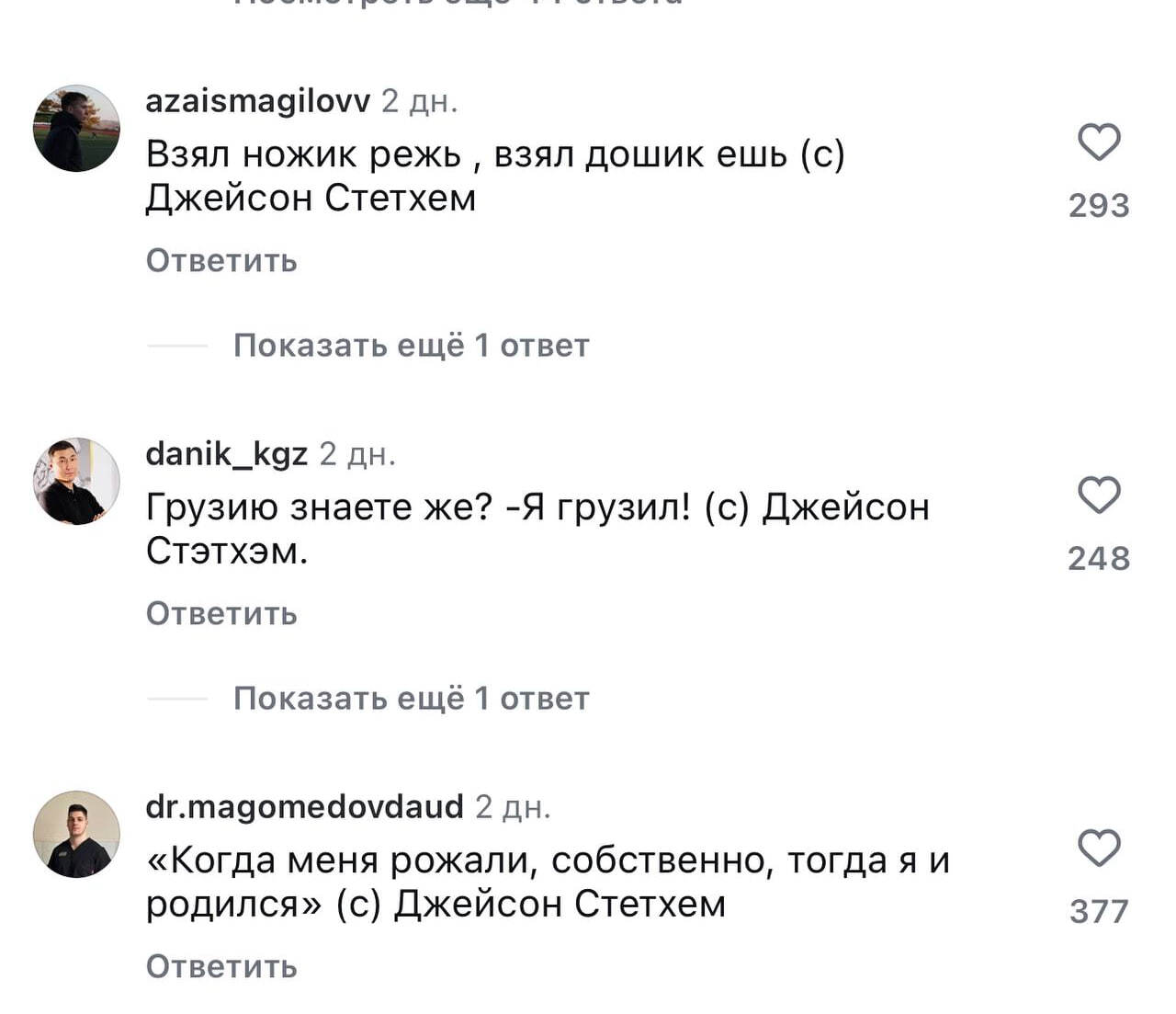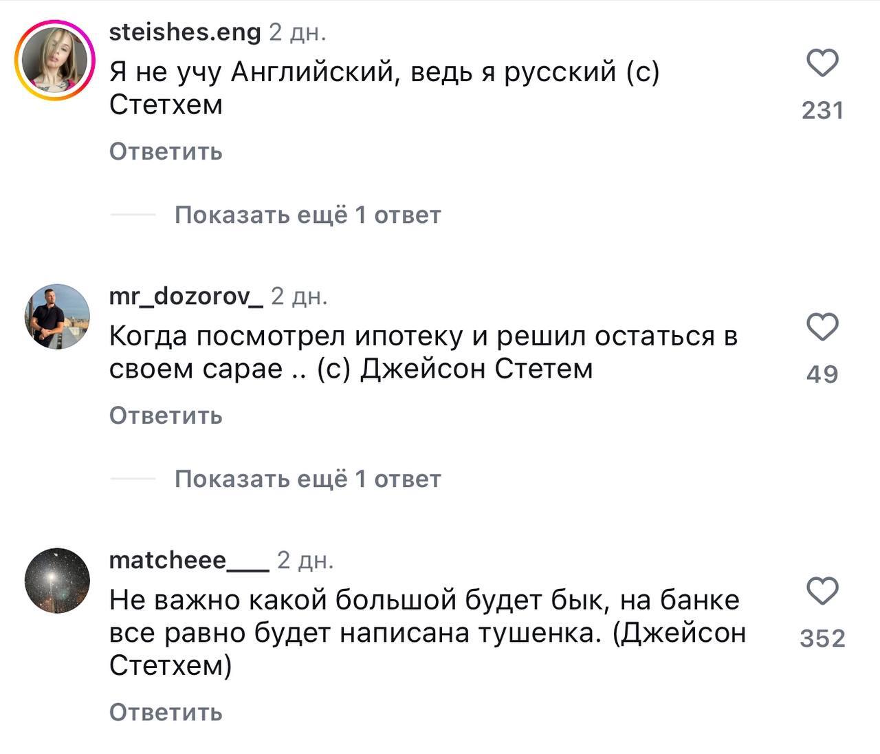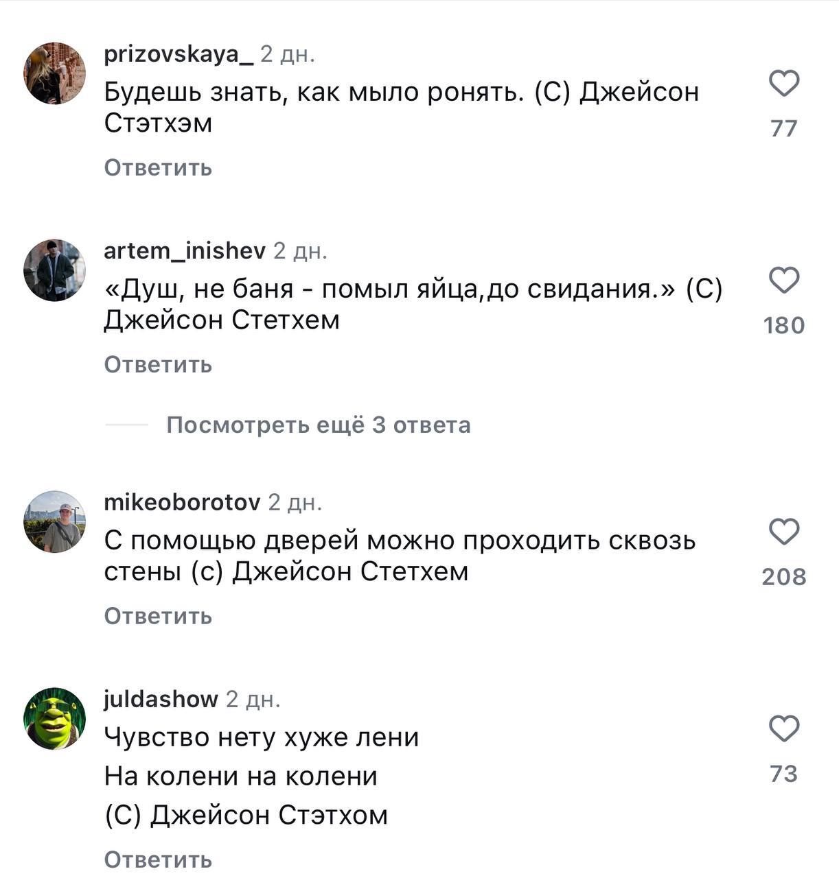 90 terebiata Юмор для всех и каждого Юмор Тем временем под новым постом Джейсона Стейтема всё стабильно 11 месяцев назад Телеграм - https://t.me/roflemem/4628 Юмор Скриншот Джейсон Стейтем Комментарии Цитаты Пацанские цитаты Telegram (ссылка) Длиннопост 2 2 Ещё 0