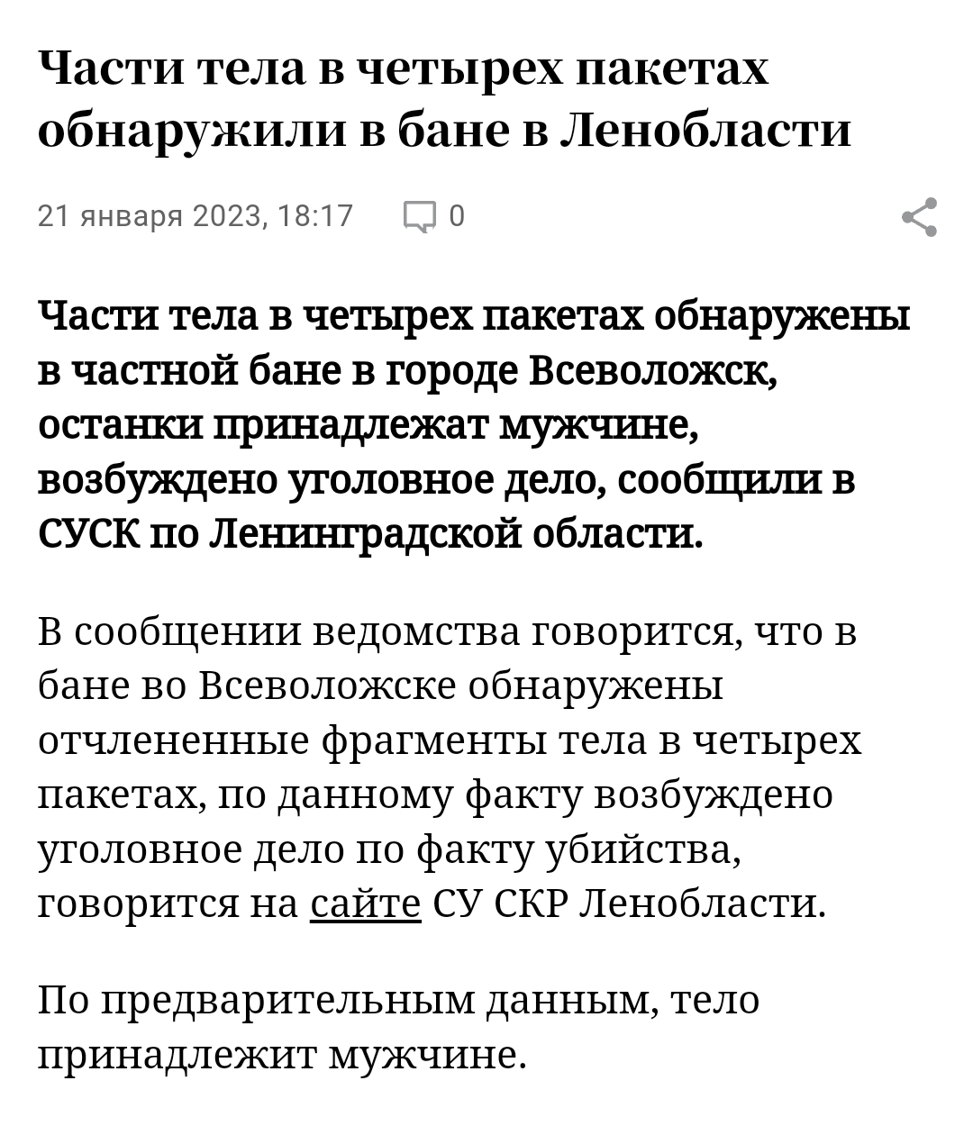 4 Maltm Баяны Тем временем в Питере 3 года назад https://m.vz.ru/news/2023/1/21/1195930.html Новости Санкт-Петербург Негатив Убийство Расчленение Ещё 0