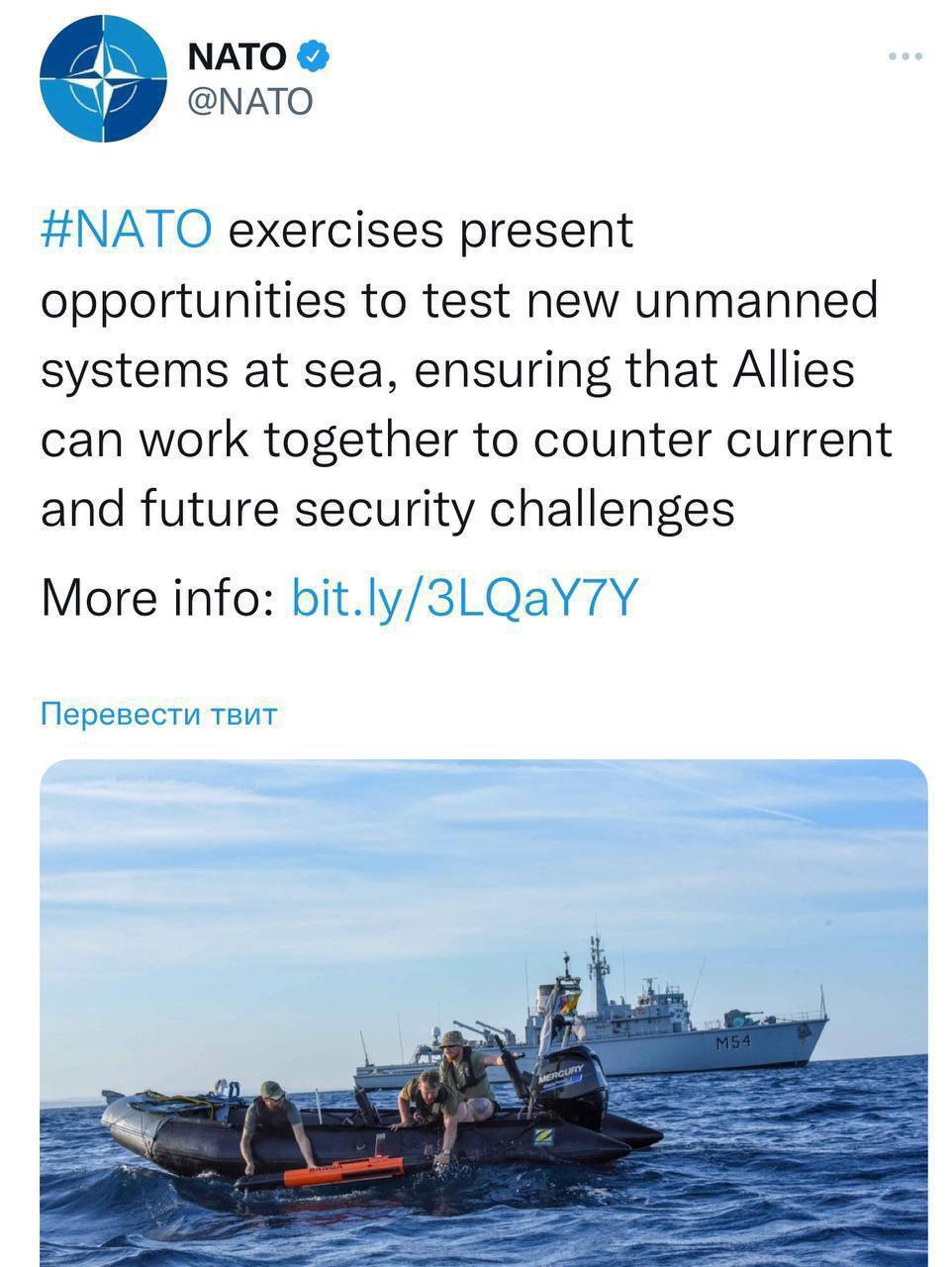 После ЧП на подводной части «Северных потоков» НАТО в Twitter похвасталось испытаниями в море новых беспилотных систем. Пользователи, кажется, начали что-то подозревать: