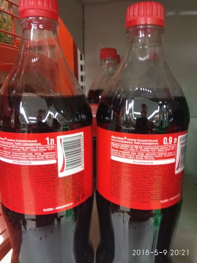 Если будете в магазине, посмотрите если будут 1л и 0.9л и увидеть разницу. Точнее размер тары.