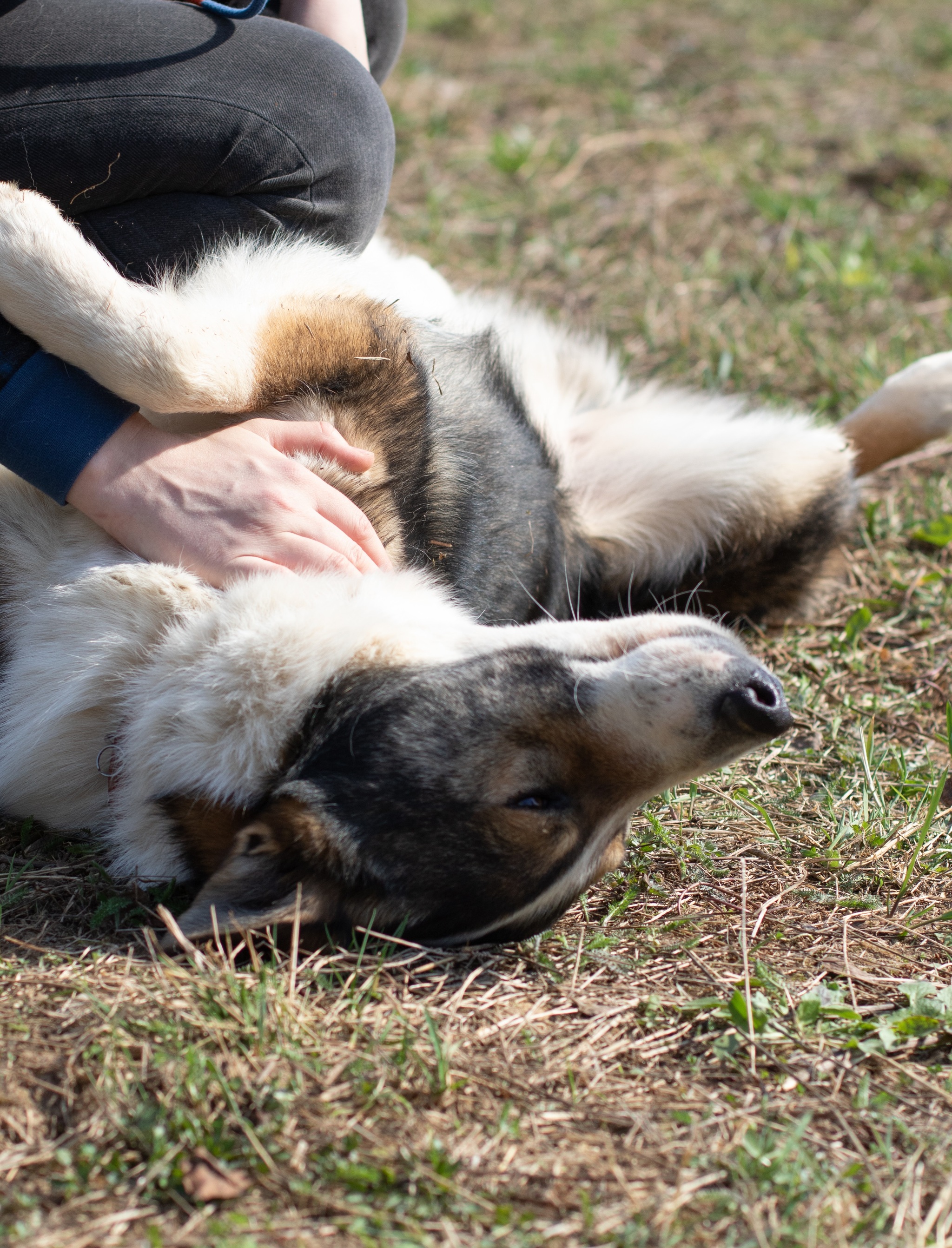 Тогда ТЕО забрали из поселка Балабаново Калужской области, где он долго скитался, голодал, часто его видели выпрашивающим еду у магазинов. На его теле были раны, разлизанные до мяса... И глаза... настороженные, но все равно исполненные огромного доверия к человеку. Имя псу было выбрано как признание его большой собачьей силы выжить и остаться ДРУГОМ нам, людям...