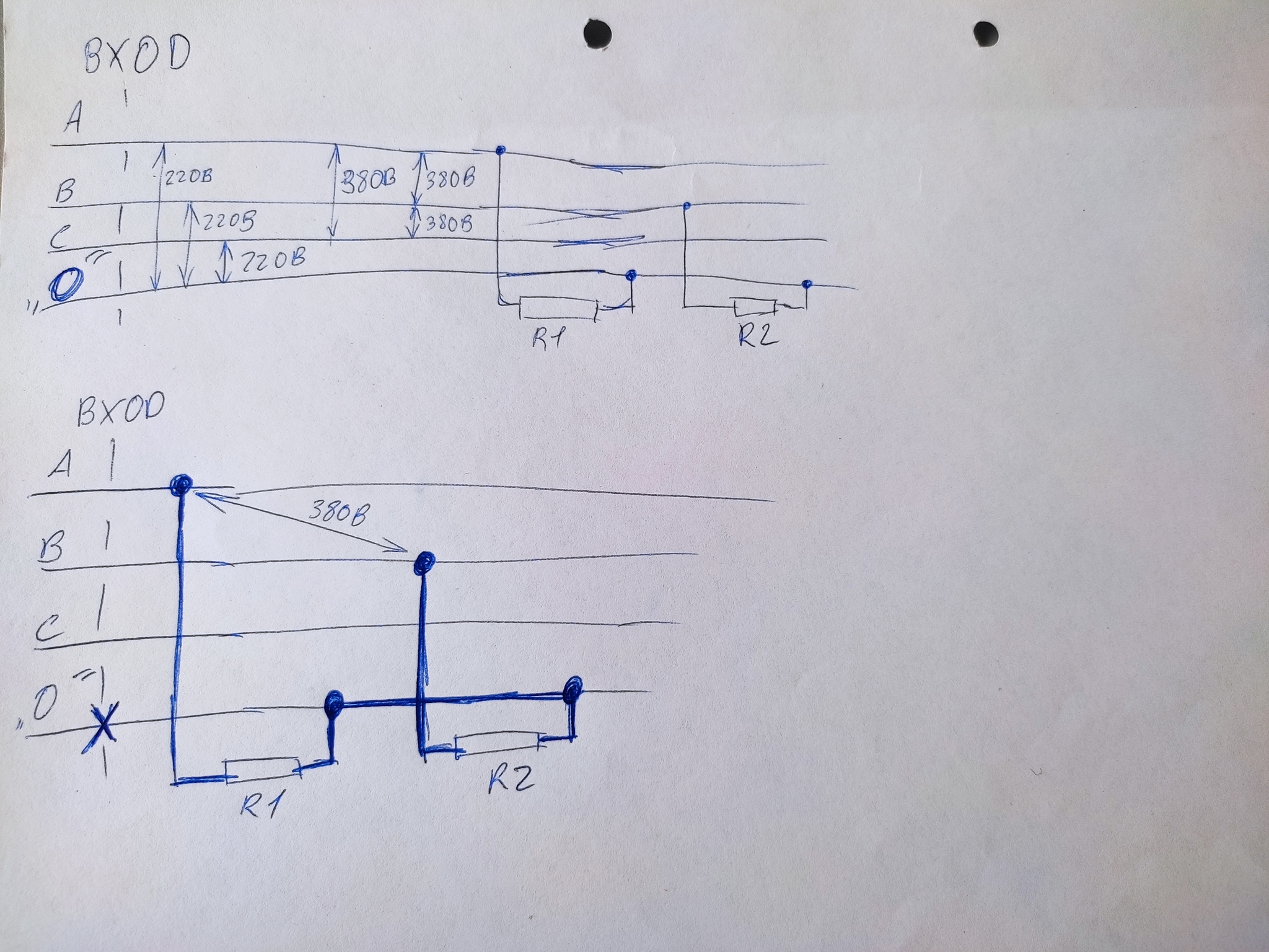 В корпус МИФИ, Москва. 2 фазы по 127 в розетках.
