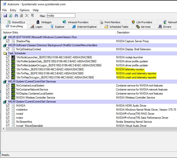Все больше софта начинает собирать информацию о вас. Всё началось с Windows 10, затем Microsoft выпустила новое обновление и даже с Windows 7 начали собирать телеметрию. Теперь же после обновления драйверов на видеокарту ваш компьютер начнет отсылать данные в nVidia. Если вы не хотите чтобы ваш компьютер отсылал данные в nVidia, необходимо отключить службы слежки, проблема решается за пару минут.