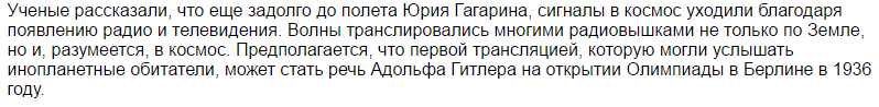 9 Lollyqop666 Теперь понятно, почему они не идут на контакт 9 лет назад Ссылка на статью: http://www.kv.by/content/341736-uchenye-vychislili-kogda-my-... Инопланетяне Радиоволны Адольф Гитлер Ферми-в-шоке Олимпийские Игры