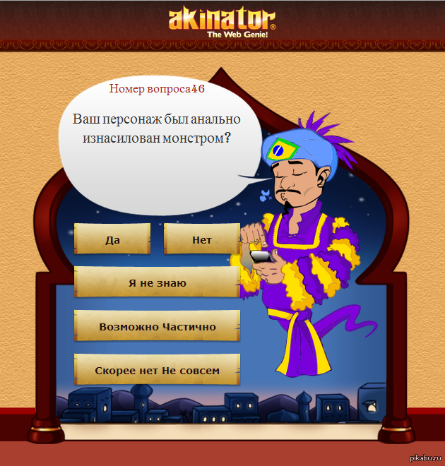15 BigSleeper Теперь понятно зачем он спрашивал про "Детский фильтр".. 11 лет назад Акинатор Поиск Вопрос Нет времени объяснять
