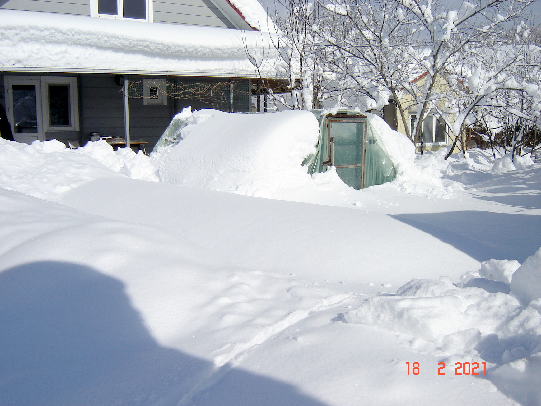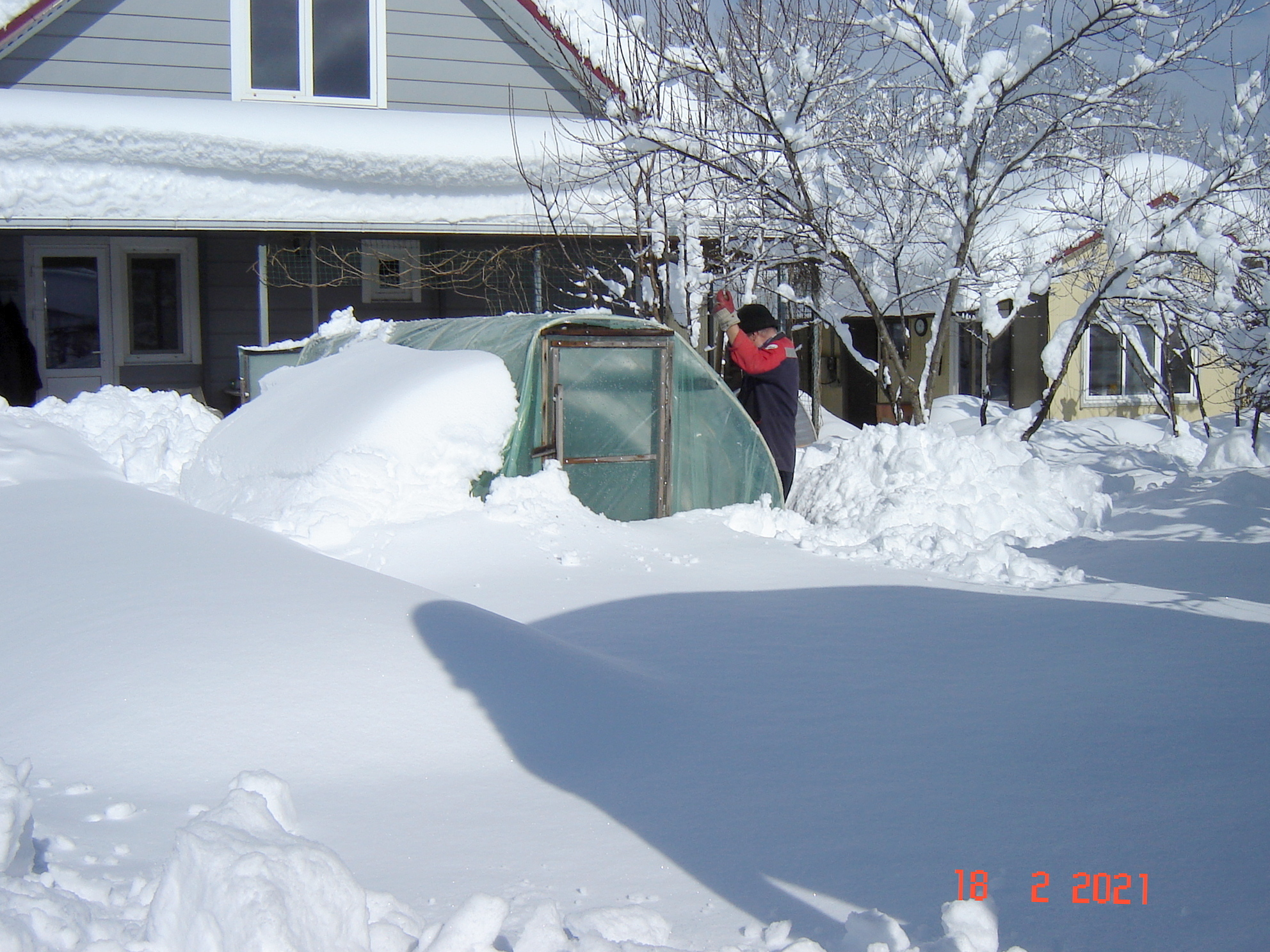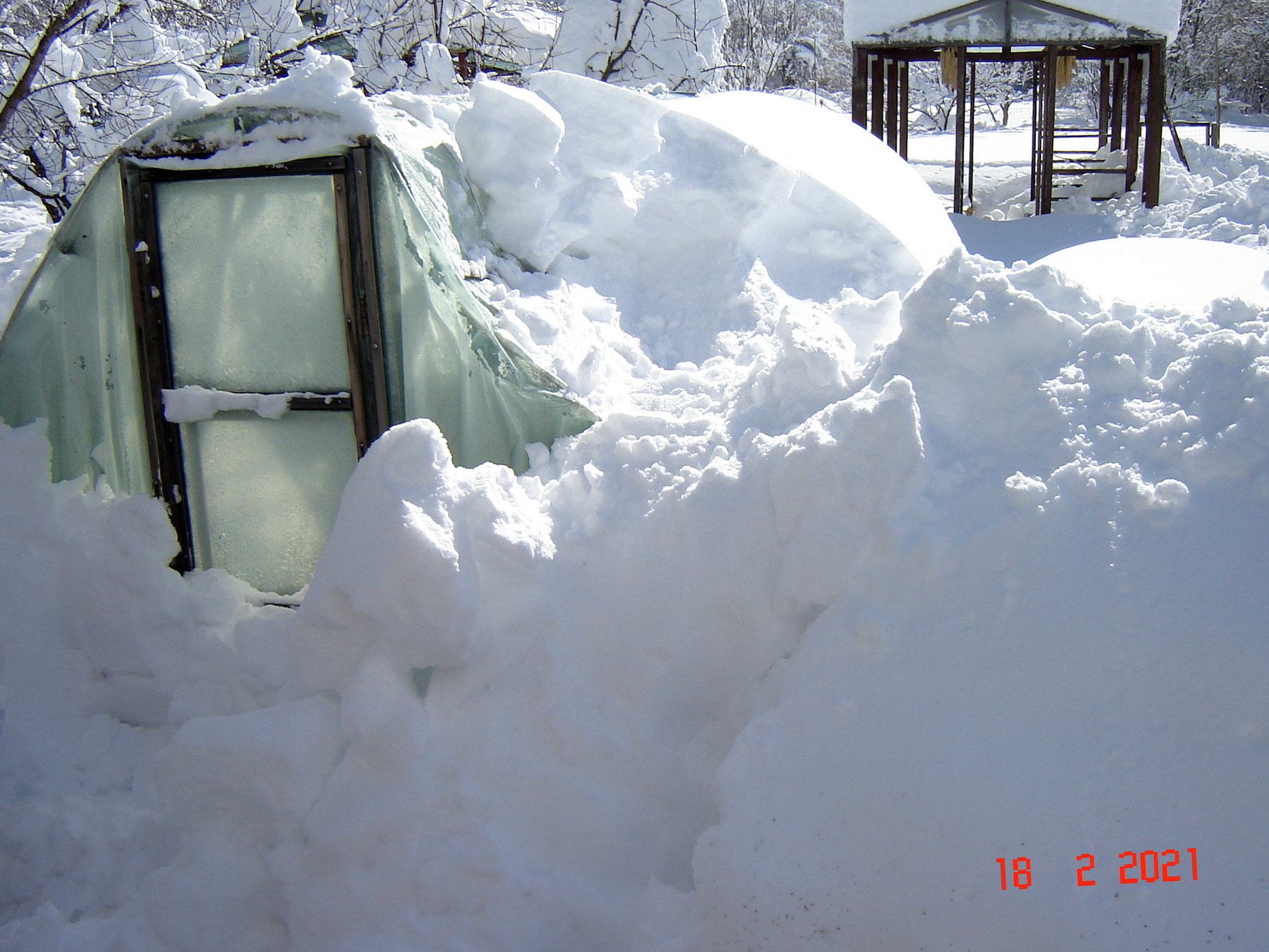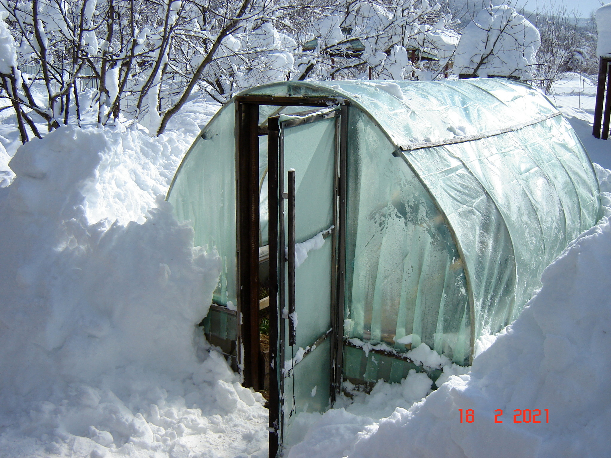 В интернете можно найти много фото, где поликарбонатные теплицы на металлическом каркасе "складываются" под тяжестью снега. За последние дни очень много снега выпало в наших краях, и моя тепличка на каркасе из труб ППР прошла испытание огромной массой снега, которого еще не было на ее веку. Надо сказать, что за четыре дня, что валил снег, я ее не чистил ни разу. Не хватало ни времени, ни сил. Столько на нас обрушилось снега, что я целыми днями чистил только придомовую территории и только одну из наших трех зимних теплиц. И то не успевал....