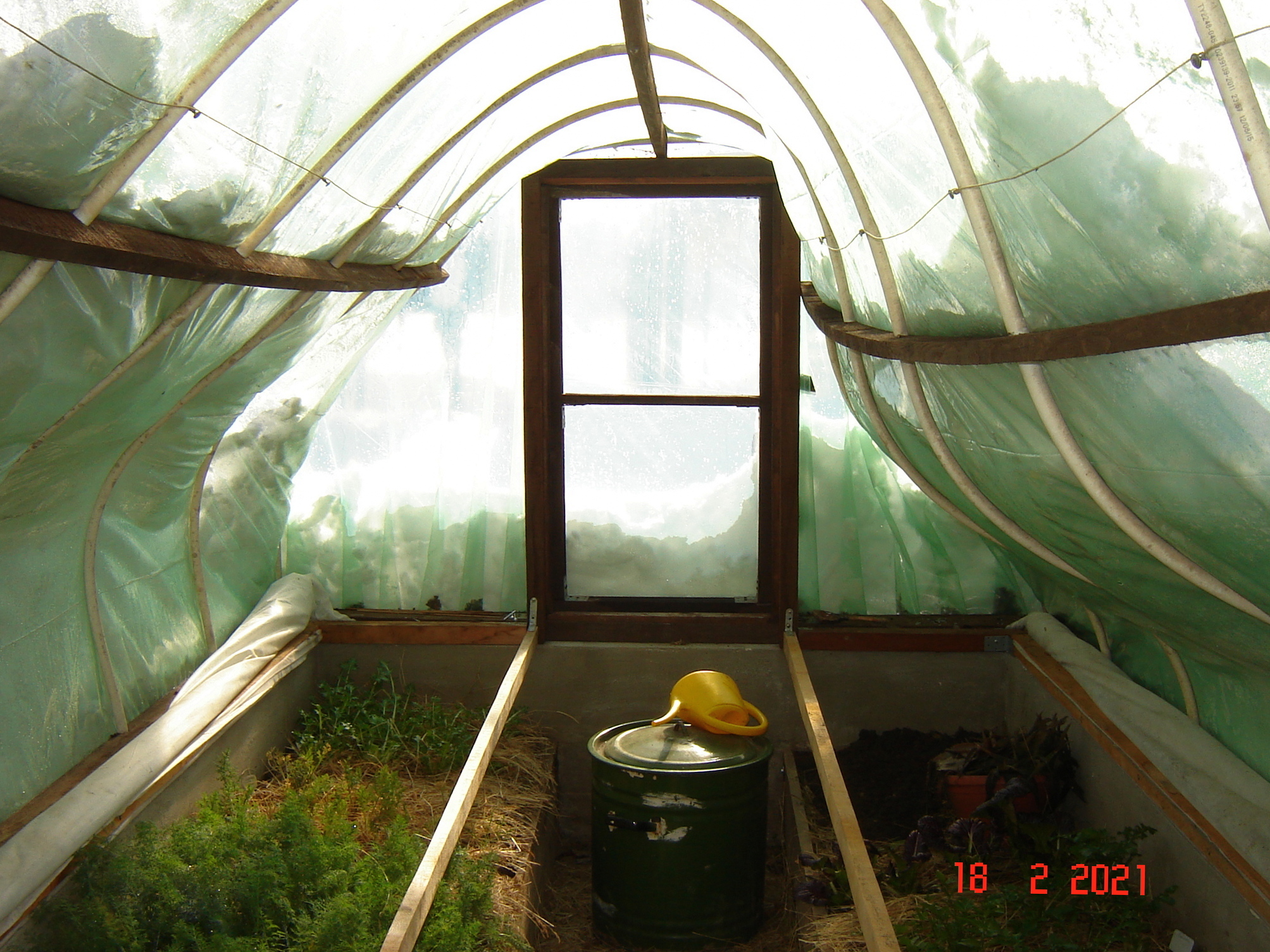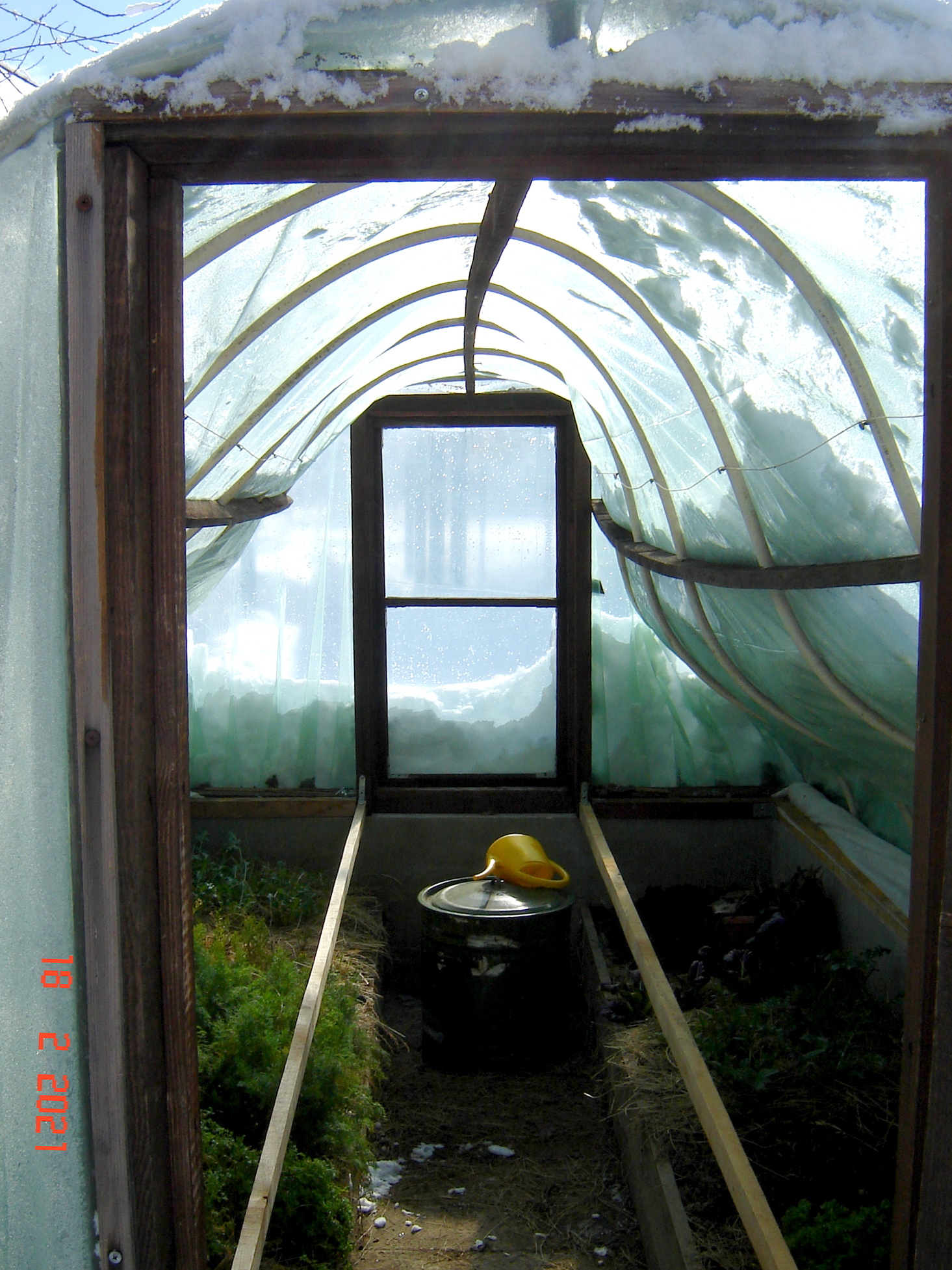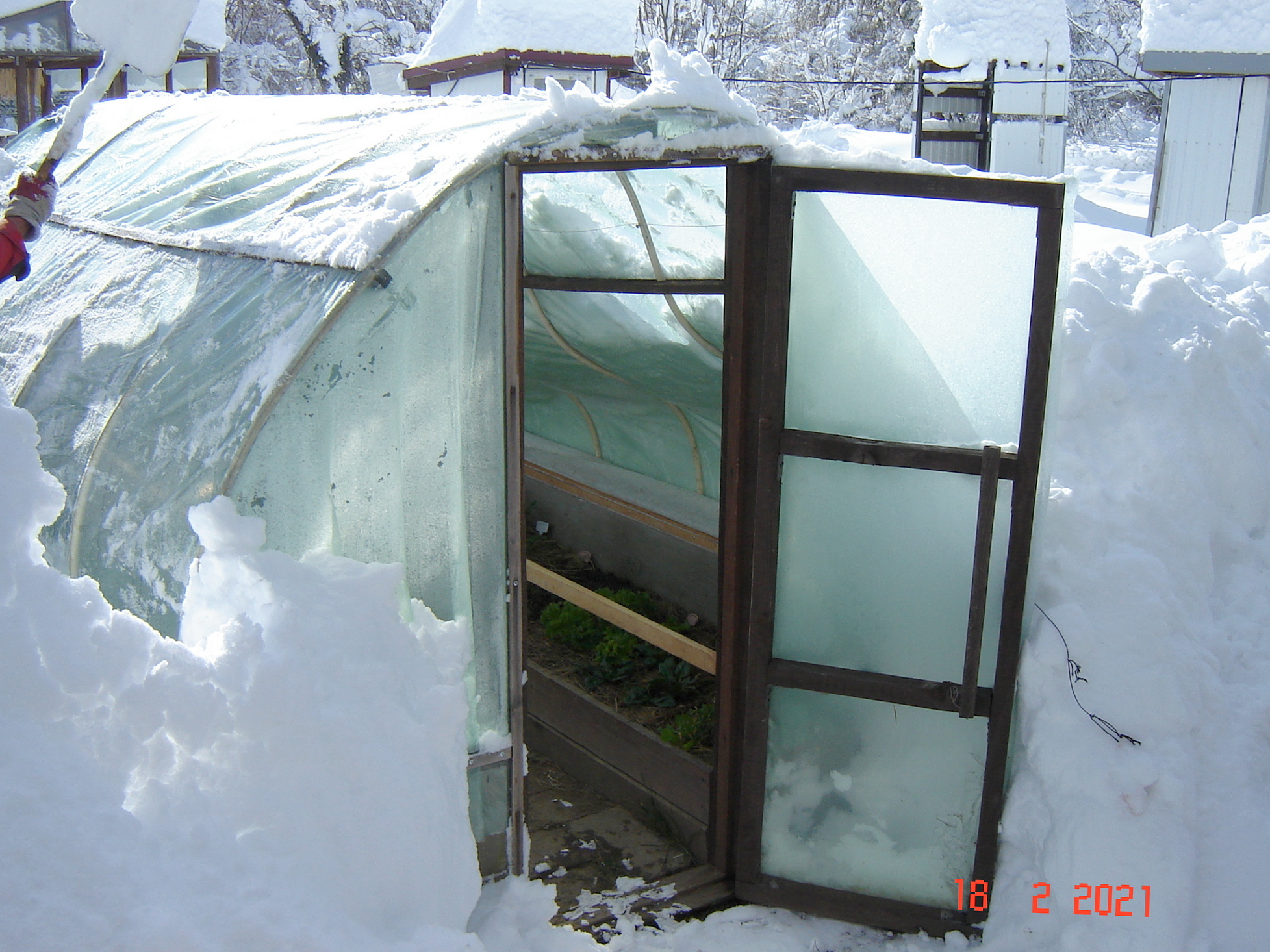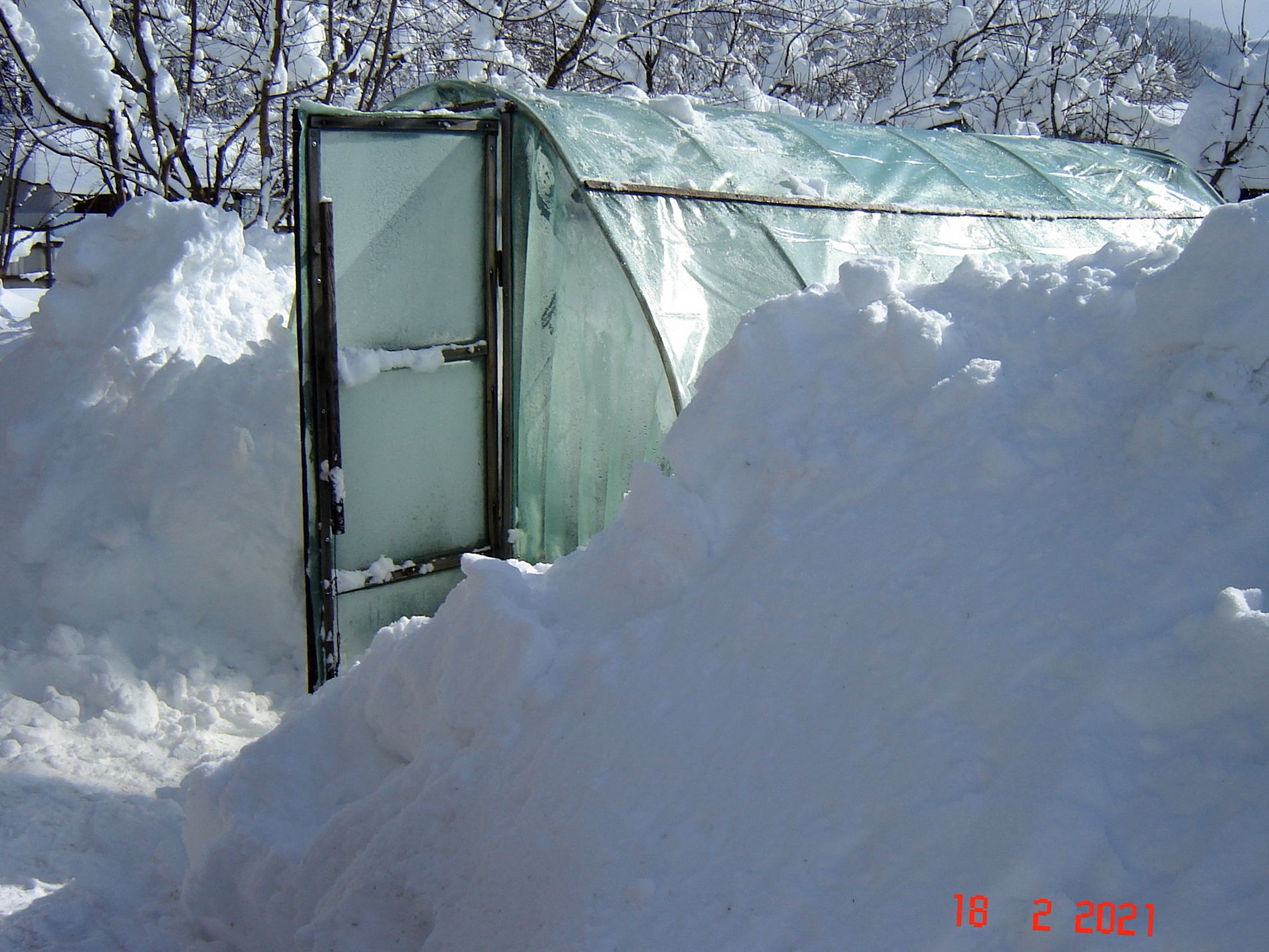 Наконец-то прекратился снег, и выглянуло солнце . И расчищал я эту тепличку уже самой последней.