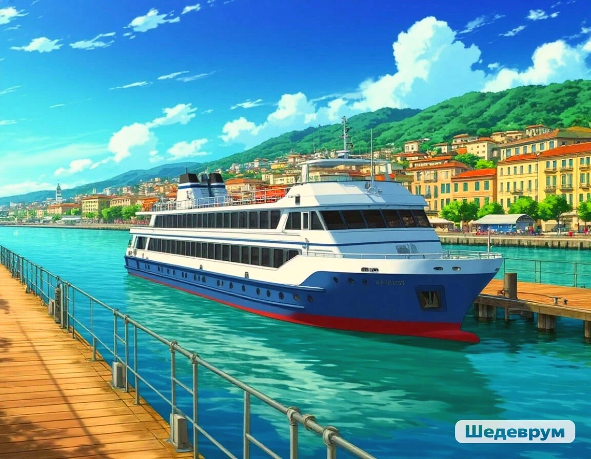 Игорь: -А вот наш теплоход! Я на их сайте читал - отличный теплоход! Каюты просторные, в каждой душ с туалетом есть, ещё и ресторан имеется!