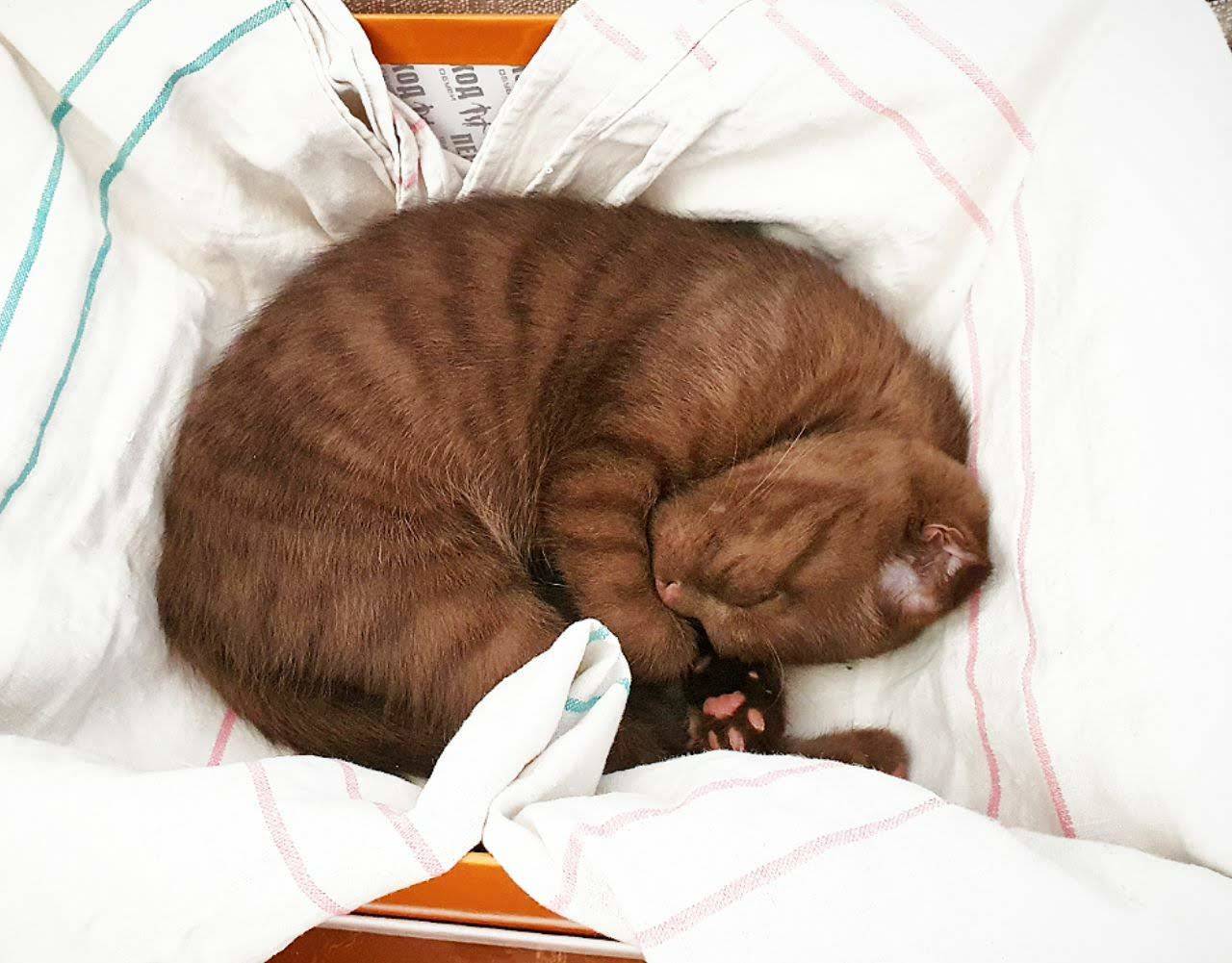 Удивительная кошка. Подобрали в подъезде мелкой.