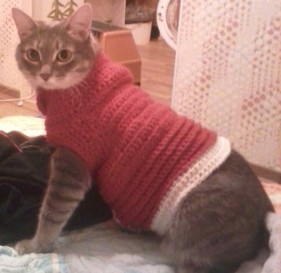 Ох уж эти хозяева кошек, все достижения питомцев себе присваивают! Не удивлюсь, если кот сам себе этот свитер сшил, а она с тегом "мое" запостила.