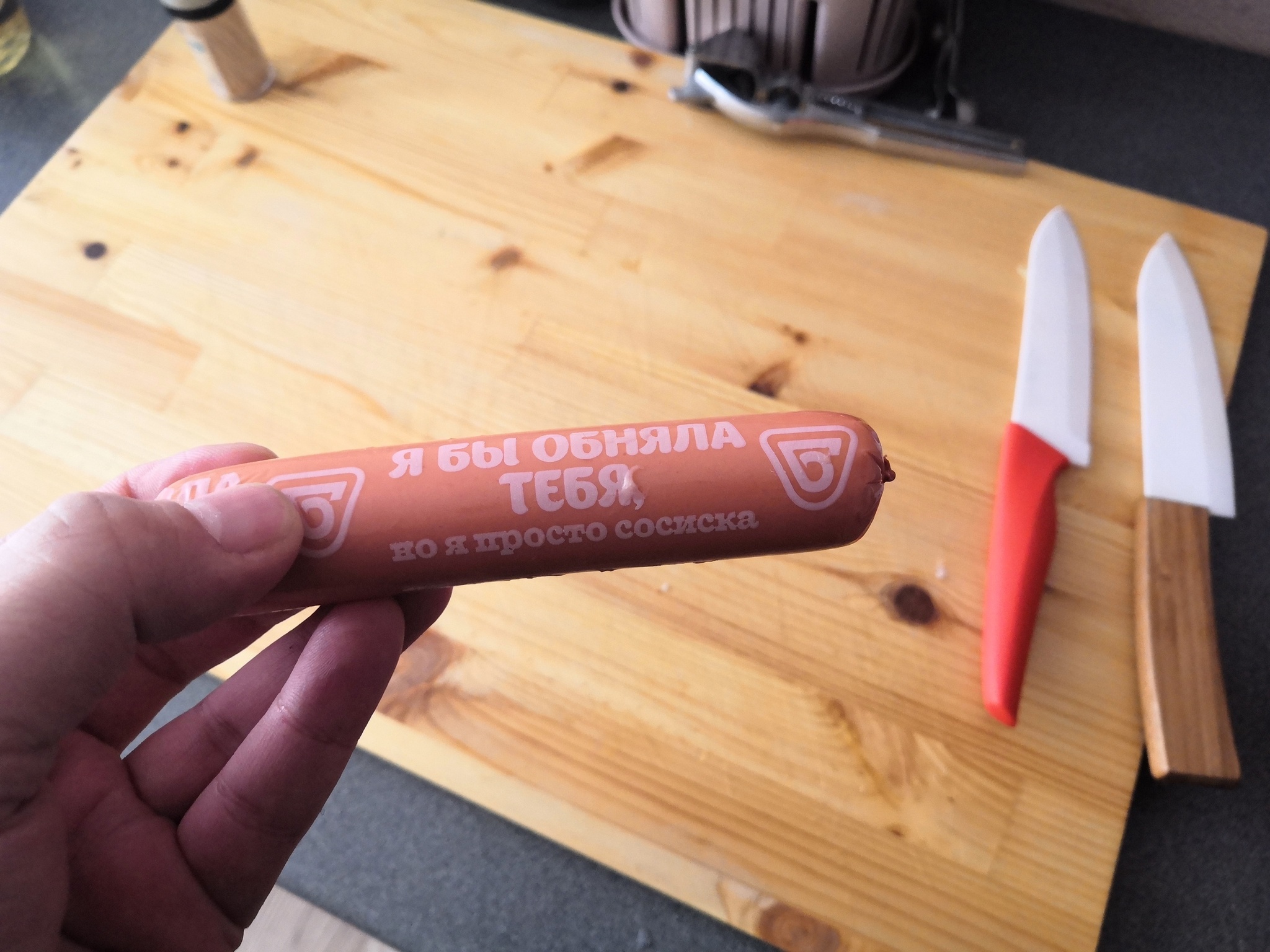 Сейчас у меня трудное время, не хватает объятий, тепла, хотя бы даже от друзей. Но меня поддерживает сосиска!)