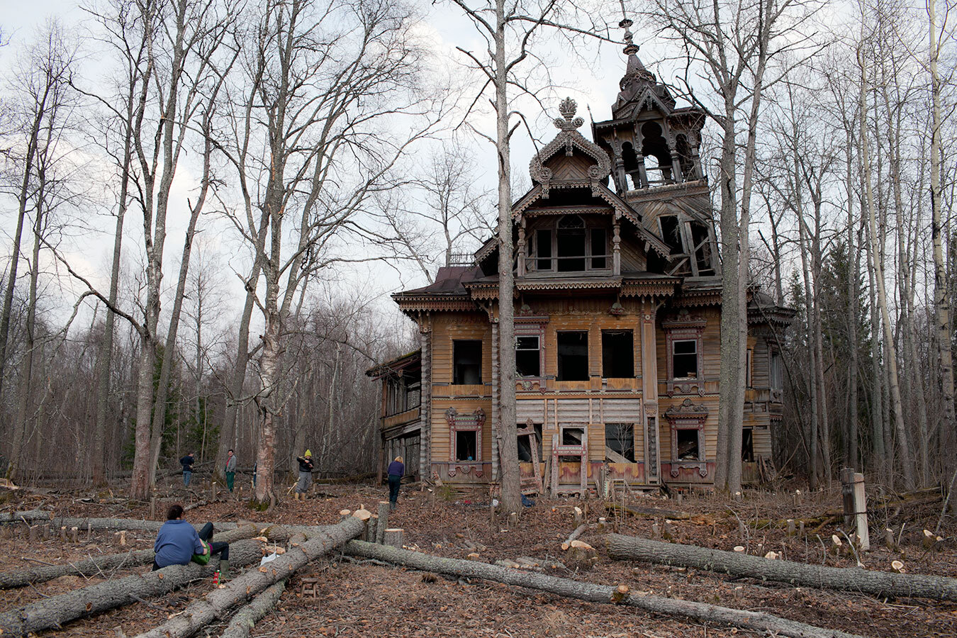 Здание представляет собой двухэтажный деревянный терем, выполненный в традиционном русском стиле. Его отличительной чертой является обильный и разнообразный резной декор, украшающий как фасад, так и, предположительно, внутренние помещения. Изначально дом был окружен хозяйственными постройками, садом, липовой аллеей и прудами, большая часть которых не сохранилась до наших дней. В начале 2000-х годов предприниматель Андрей Павличенков инициировал начало работ по спасению терема. Шедевр деревянного зодчества восстанавливал реставратор Александр Попов. Для проведения реставрационных работ здание пришлось разобрать по частям и перевезти в город Кириллов. Процесс реставрации проходил с 2011 по 2017 год и проводился с использованием исторических технологий и материалов. В результате был восстановлен основной объем здания, включая резной декор. Сохранилось более 60% оригинальной конструкции и создано около 6000 деталей резьбы, в точности повторяющих оригинал.
