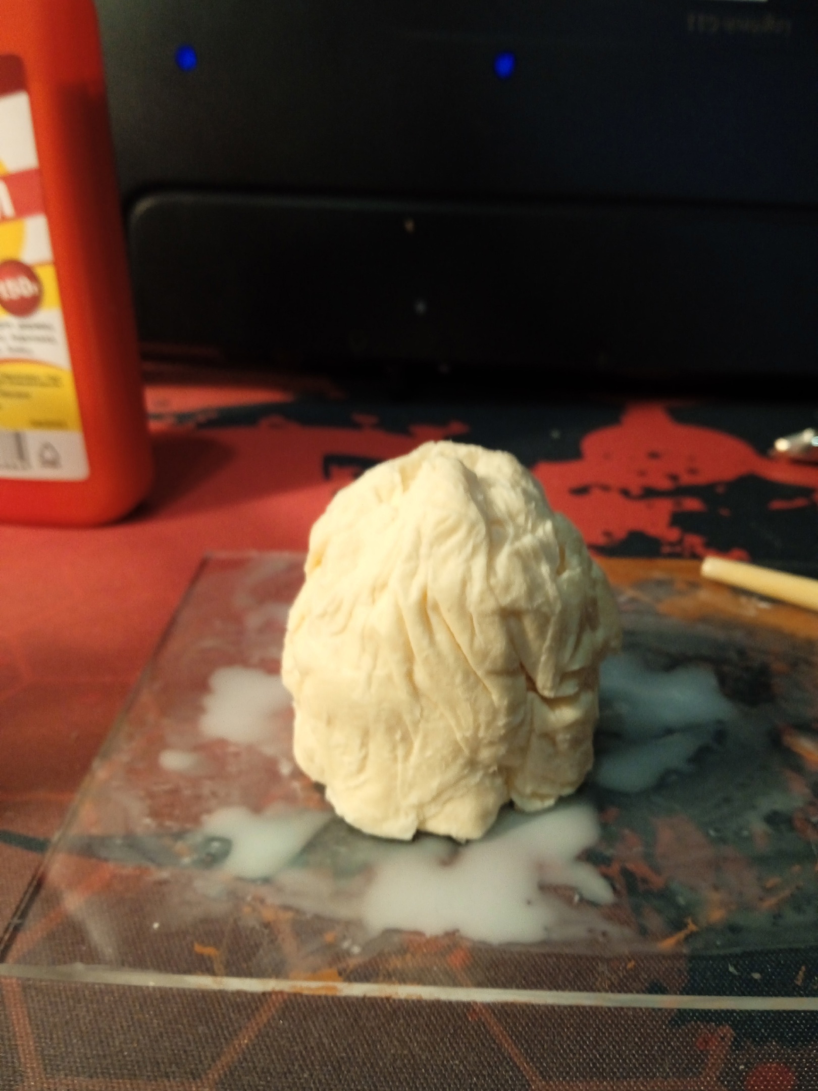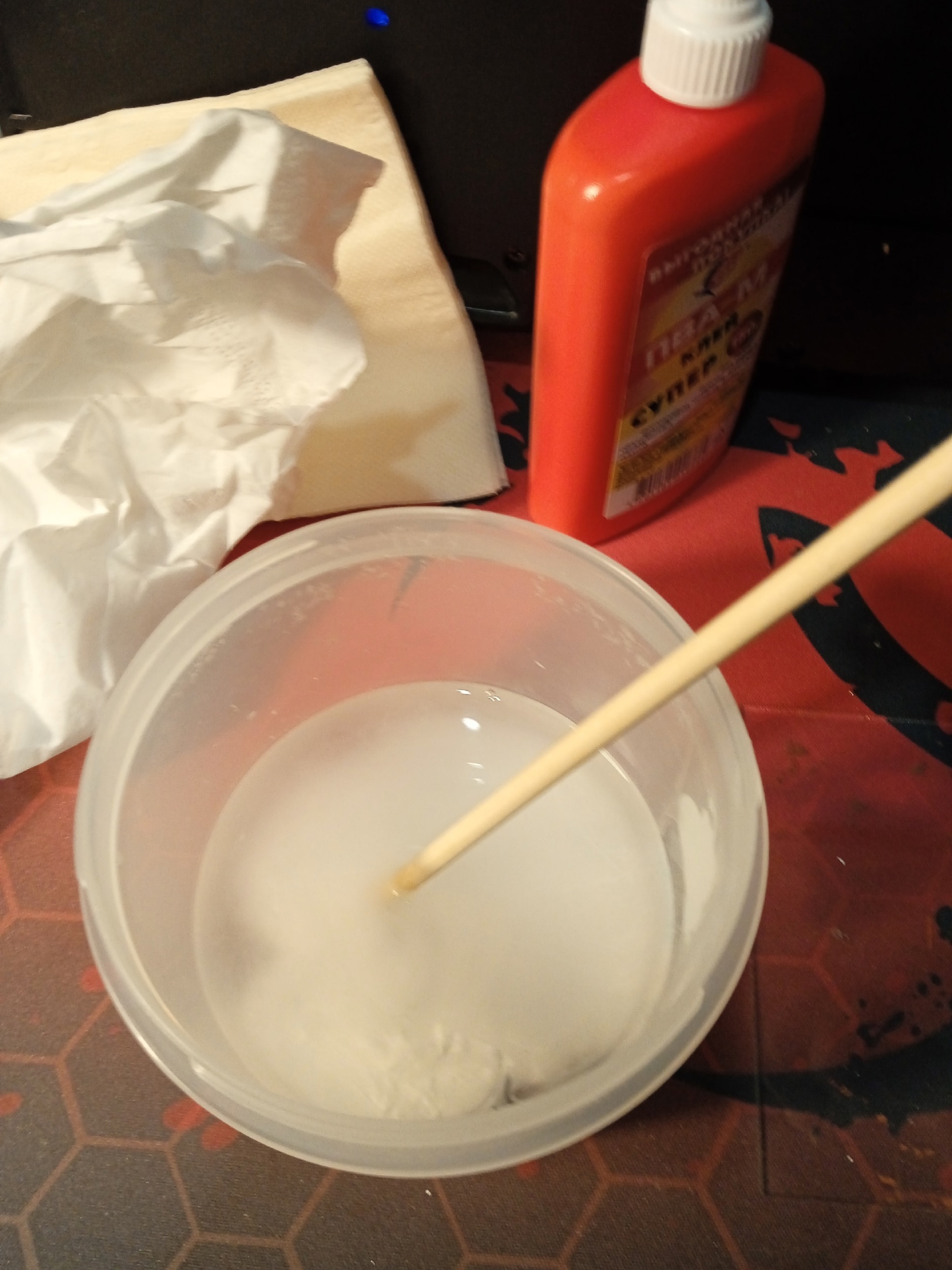 Разводим обычный клей ПВА в ёмкости (не пищевой) и закидываем туда бумажные салфетки ну или туалетную бумагу.