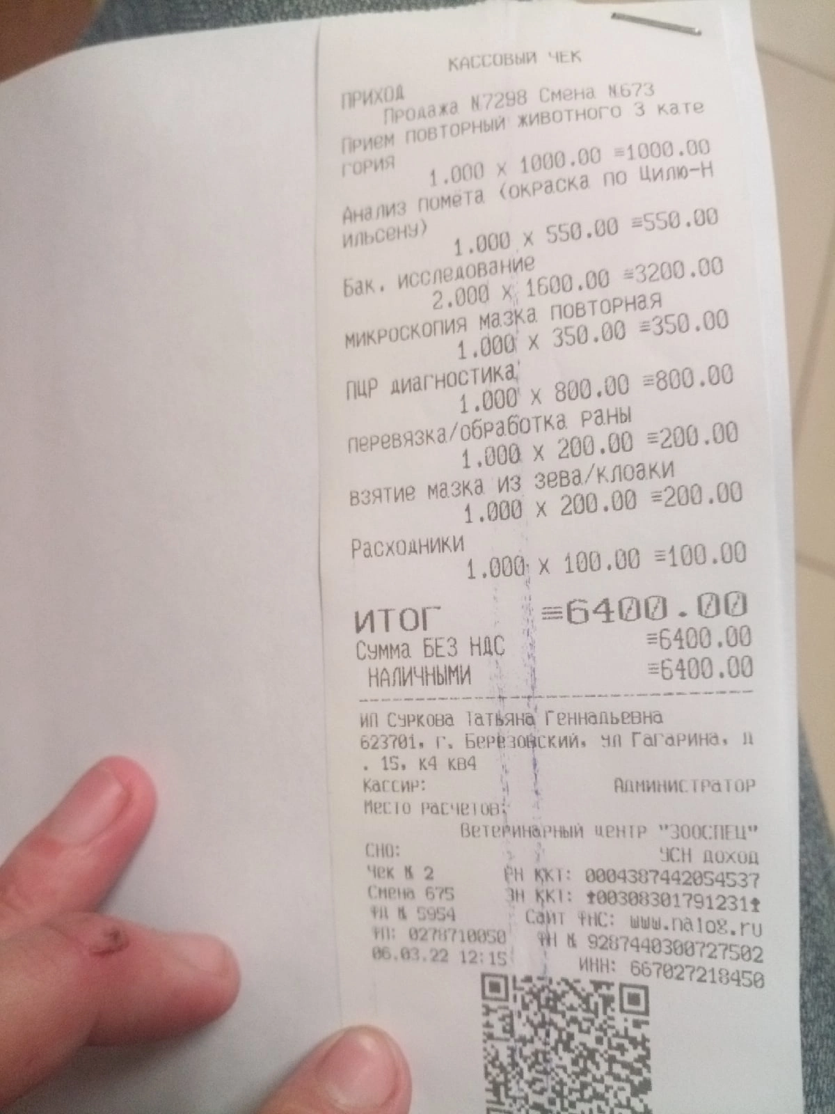 Сьездили в Зооспец, сдали все необходимые анализы, обработали крыло.Часть будет готова через пару дней, часть ждать 3 недели.