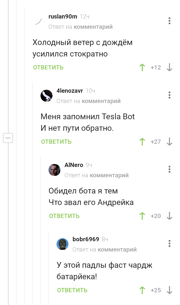 5 Vonnaru Tesla-bot 4 года назад #comment_209611840 Tesla Робот Илон Маск Комментарии на Пикабу Ещё 0