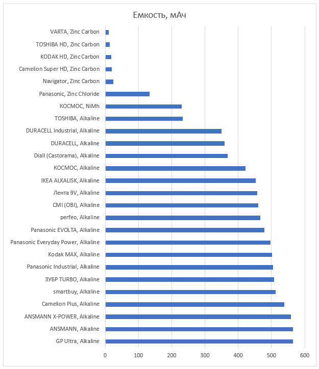 В тестирование приняли участие 26 элементов питания.