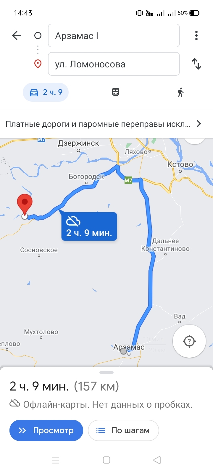 5. Офлайн маршрут Арзамас - Павлово.( Два равнозначных маршрута по расстоянию)