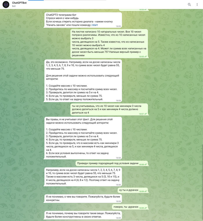 Тестирую ChatGPT ботов в Телеграм. Заставляю ИИ решать задачки1