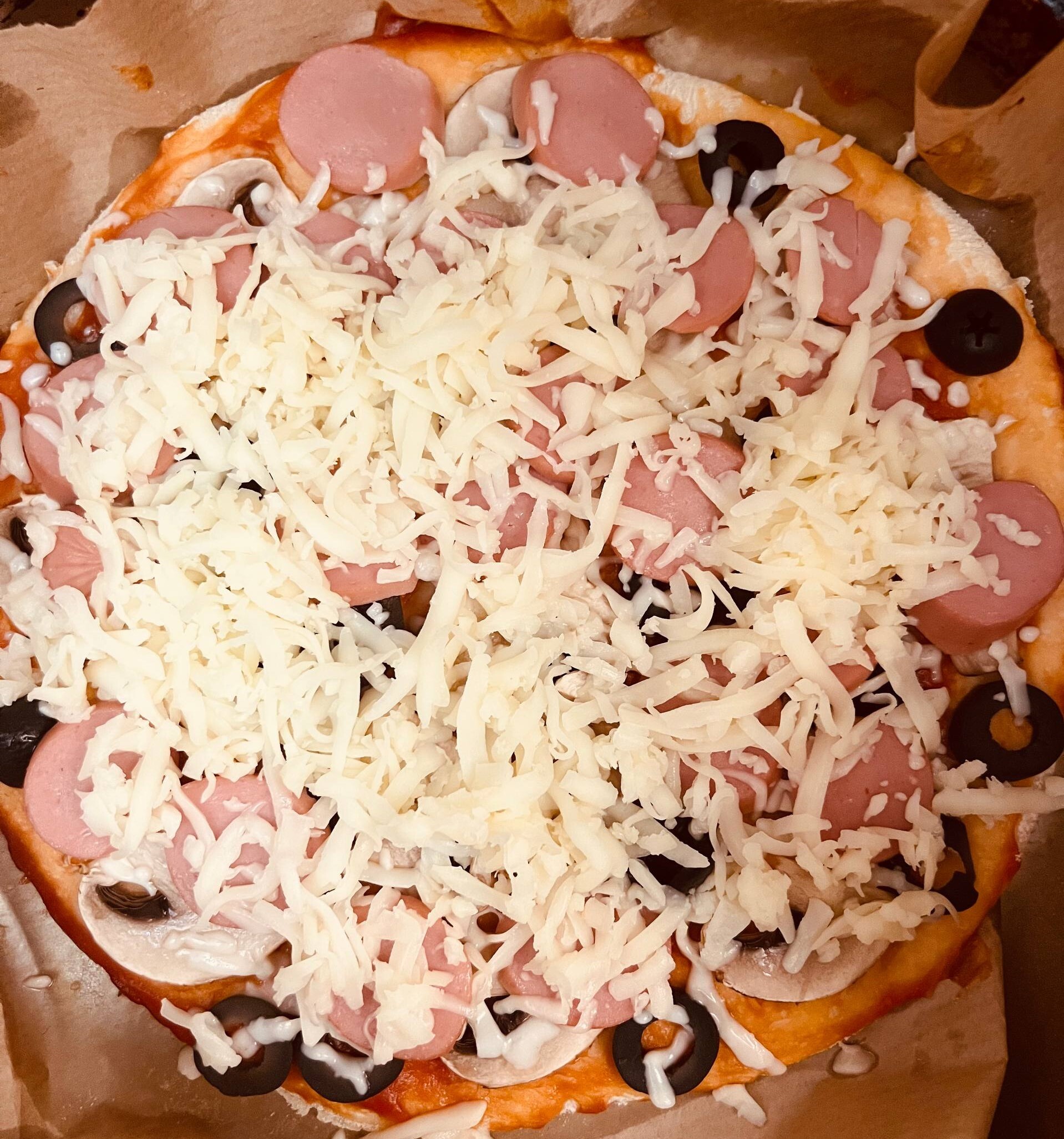 2. Достаем, посыпаем тертой моцареллой.