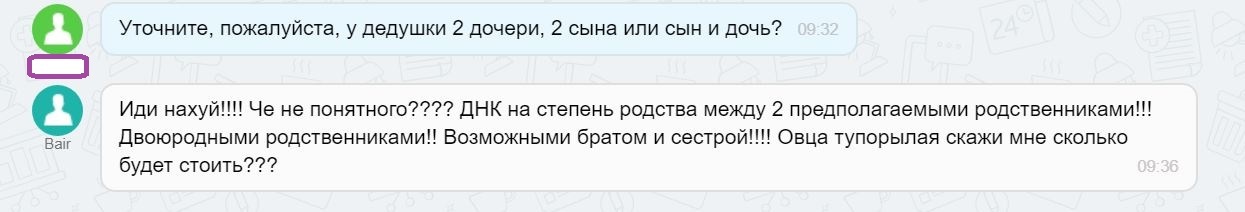 Один из самых запоминающихся случаев был когда дедушка хотел через тест со внуком выяснить, от него ли его дочь. Вот там посредники знатно накосячили и предложили сделать тест по Y хромосоме, которая ни при каком раскладе не могла дать положительный результат, так как внук получил её от своего отца (Это к вопросу почему лаборатория не очень любит посредников и всё равно имеет свой клиентский сервис, консультантов и пункты забора образцов. А так же почему лаборатории нужна схема родства, ведь будь на месте дочери сын - тест бы подошел как нельзя лучше.)