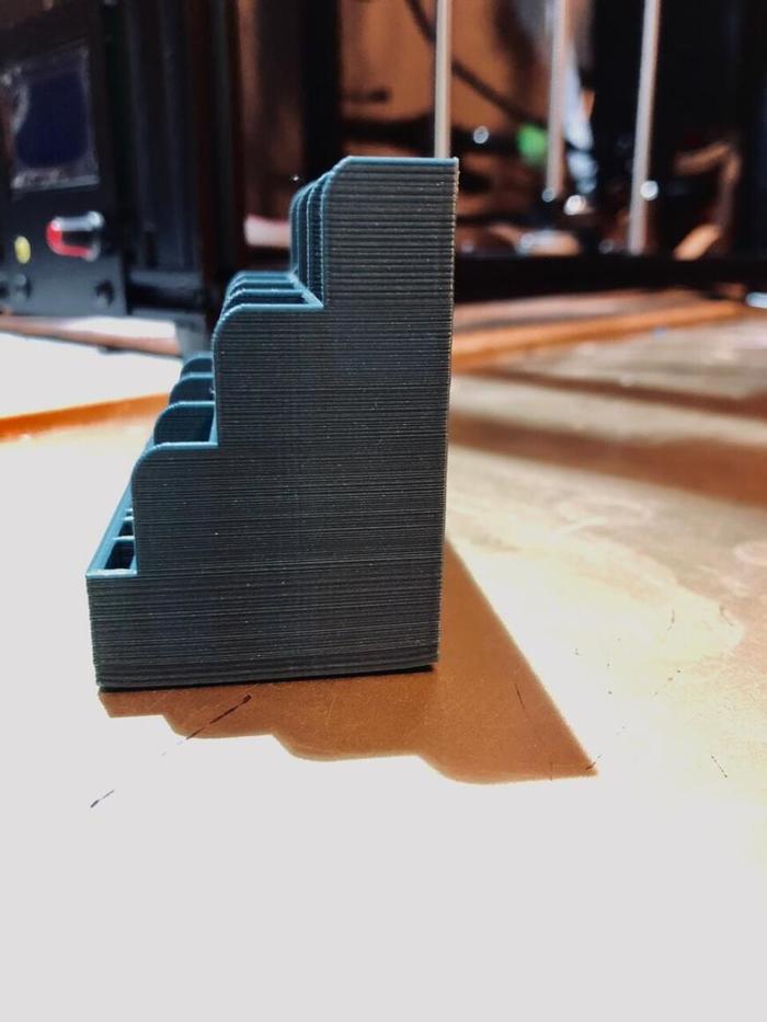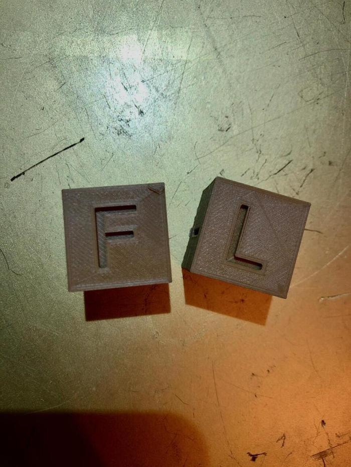 Вот явный пример неправильной сборки z оси. Так как конструкция там с кучей не закрепленных жестко элементов, то это самая сложная ось для сборки. Ну и получилась вот такая история. Далее два кубика до и после устранения проблемы