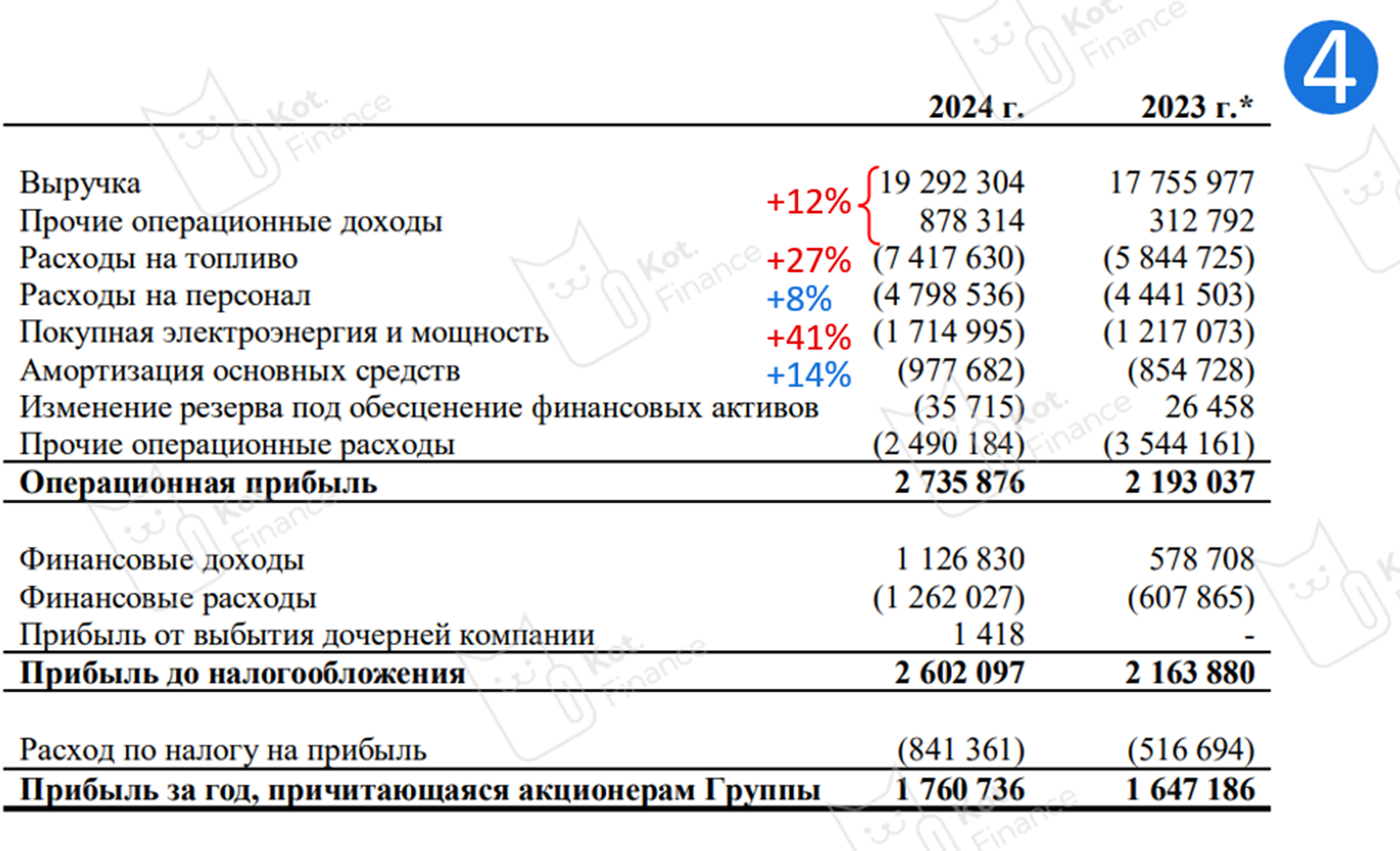 Основа себестоимости – топливо и люди (👀слайд 4) В 2024 отмечается сильный рост цен на топливо (+27%) и покупную мощность (+41%)