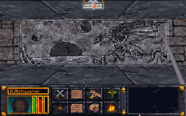 Некоторое время спустя мне удалось найти замаскированный проход в подземелье. Внизу было тепло и влажно. На полу, покрытом толстым слоем плесени, я сразу заметил следы больших и острых когтей, а вскоре наткнулся на мёртвое тело какого-то неизвестного искателя приключений. Судя по сохранности тела, погиб он не больше, чем за сутки до моего появления. Обыскав его, я обнаружил довольно грубо нарисованную карту подземелья и записку, где говорилось про шесть ключей от "секретного зала Колосса". Эти ключи были спрятаны в разных частях подземелья.