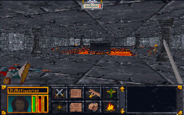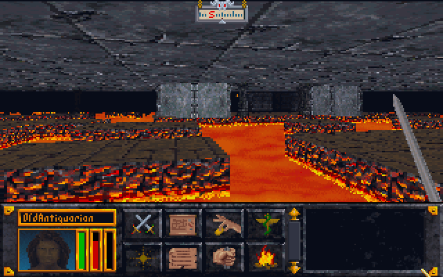 В южной части Крипты был огромный зал, наполненный бурлящей лавой. В глубине его виднелись покрытые рунами стены каменного храма. Добраться туда можно было по каменным платформам, которые благодаря неизвестной магии держались на поверхности лавы, но надёжнее было использовать зелье левитации.