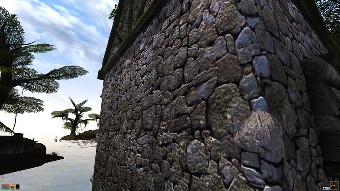 - Сгенерировал для них карты нормалей и карты высот для parallax-эффекта (пробовал использовать specular карты, но OpenMW не поддерживает PBR, ничего хорошего не вышло)