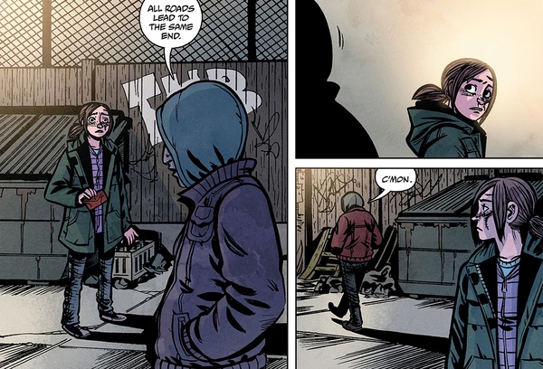 Комикс встречает нас довольно топорной рисовкой, черты лица и эмоции проработаны довольно хорошо, а с перспективой иногда не парились вообще. Комикс стоит прочитать ценителям Last of Us, он отлично дополняет историю. С низу приложу ролик, в котором более полно и подробно рассказано о событиях комикса.