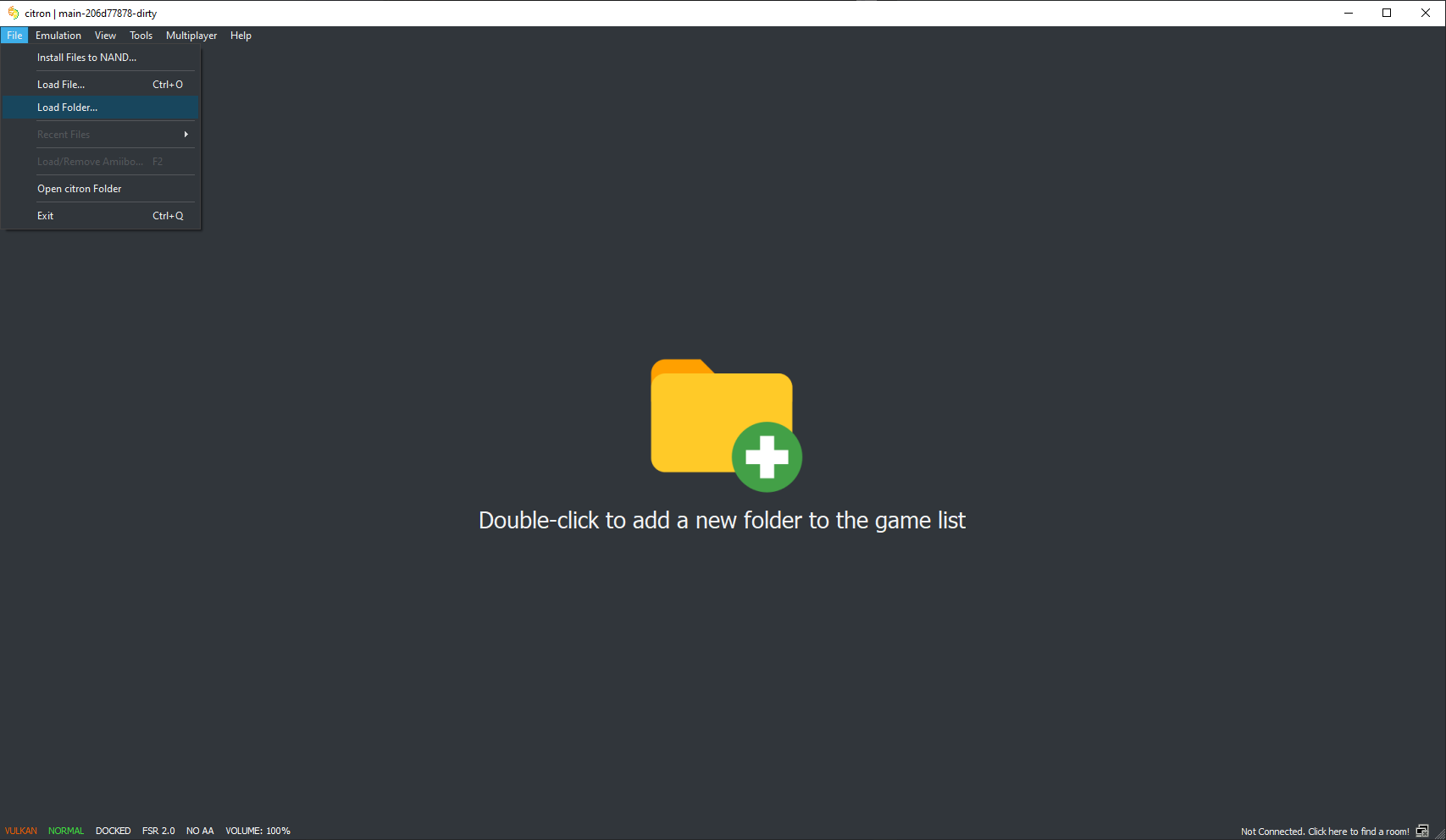 Далее нам надо добавить игру, ищем ее через File и Load Folder... или нажимаем на плюс на главном экране и добавляем папку с игрой