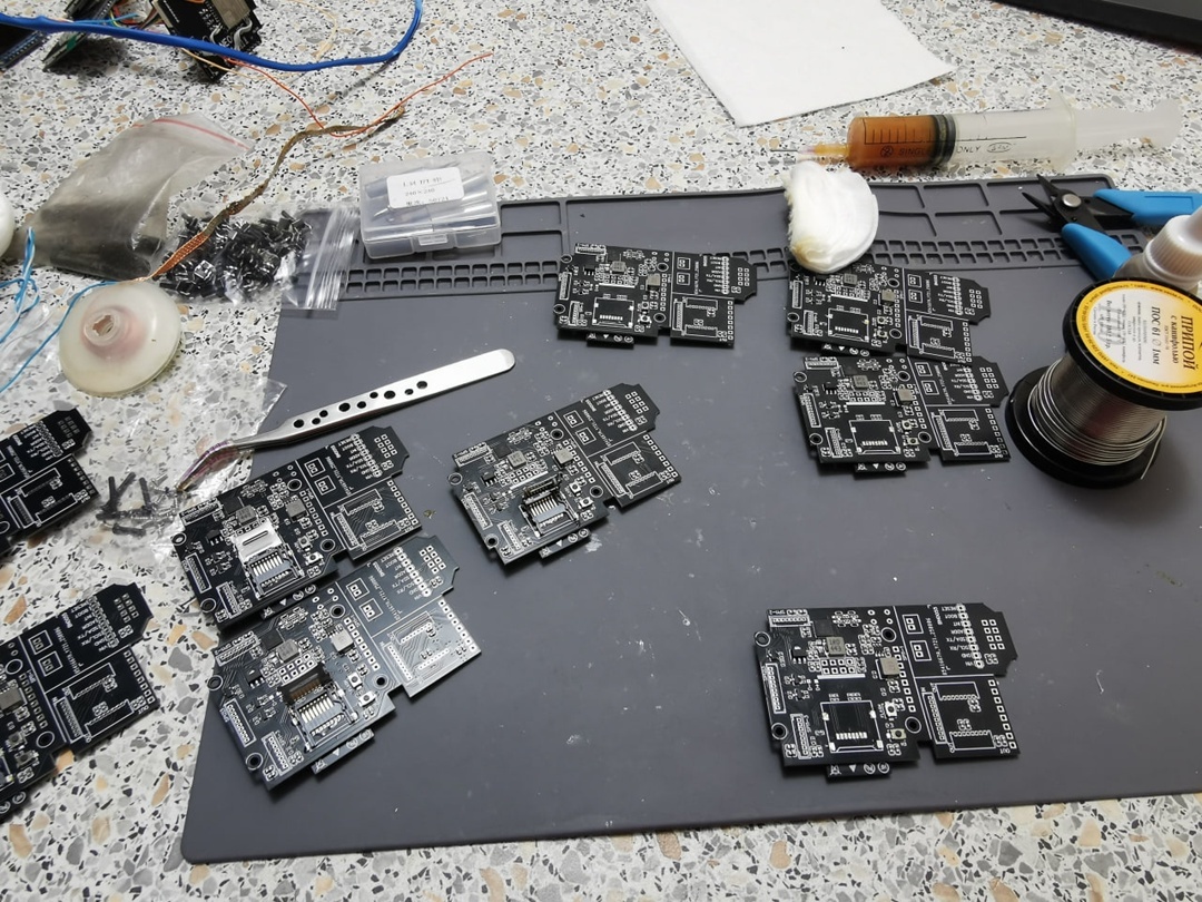 4 сентября — кроме поста с дневником за предыдущий месяц, понемногу допаивал разъемы. На столе платы для еще 9 кубиков.