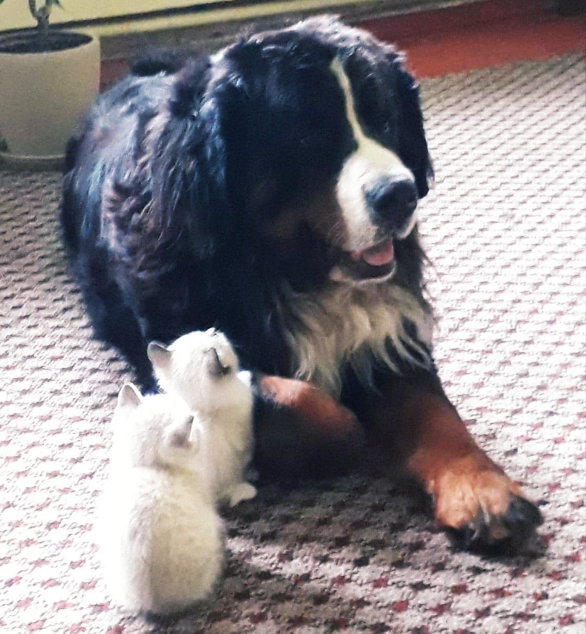 Ко всем домашним, людям, котам и собакам - тибет очень лоялен. "Свои" для Барни - неприкосновенны!