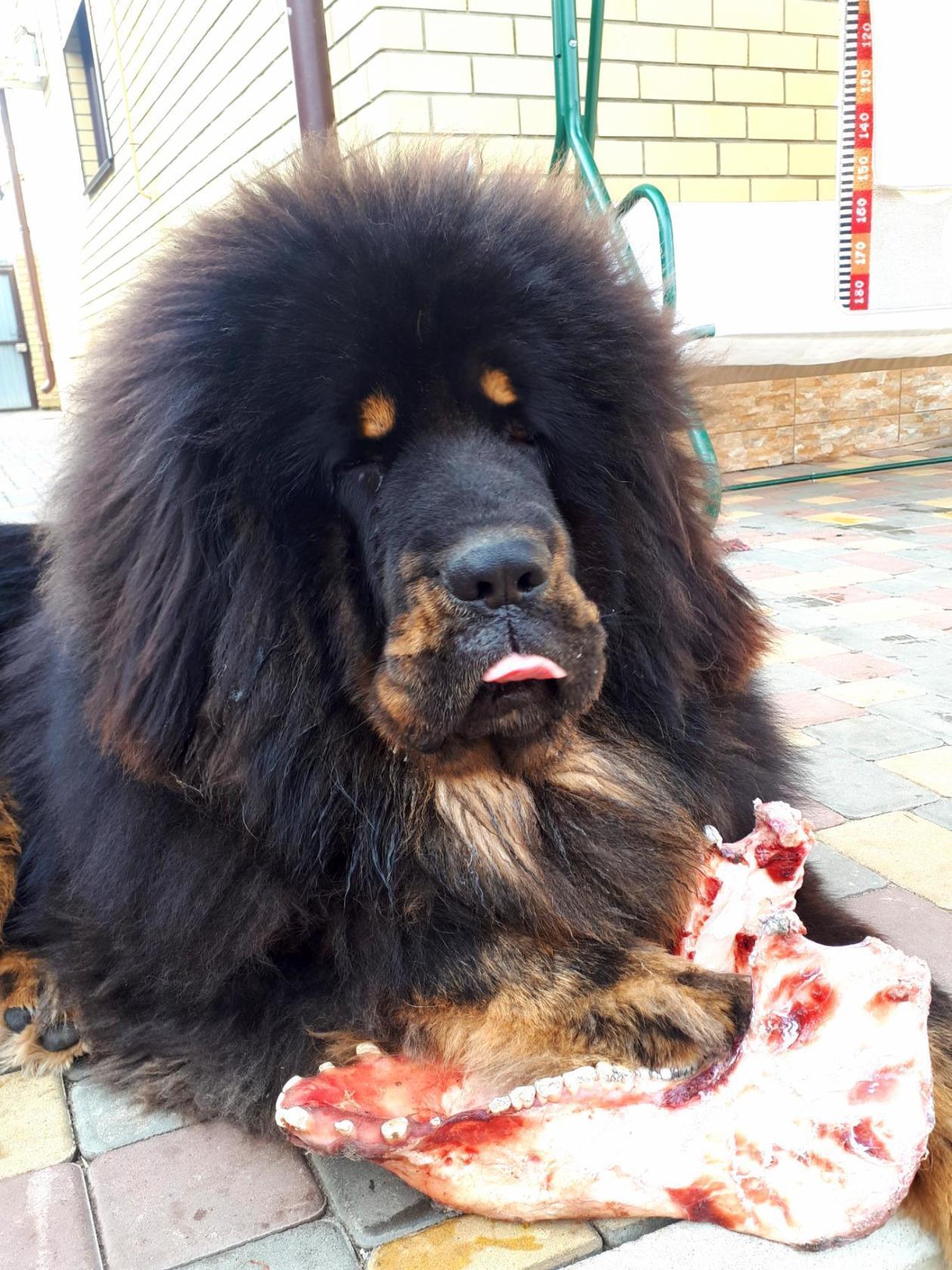 Вопреки расхожему мнению, ест тибет мало и редко. Взрослые тибеты могут есть вообще 1 раз в два дня. За день Барни съедает 1 миску (500 грамм) сухого корма. Ну и очень уважает всякие кости в виде развлечения) После зимы наш участок с вмерзшими в лед костями напоминал замок Людоеда!