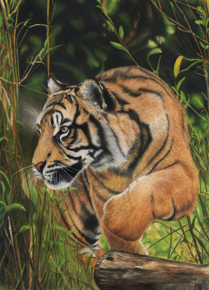 PS - я даже украл одну картинку себе в вк в ленту новостей ))) Назвал её " тигр на охоте " пастельные карандаши ну и твой никнейм добавлю как автора ))