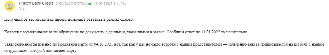 Так же подняв информацию по БКИ у меня вопрос к Тинькофф банку, если 4 октября 2021 года были мутные заявки и вы мои данные проверяли. ссылаясь на эти заявки.